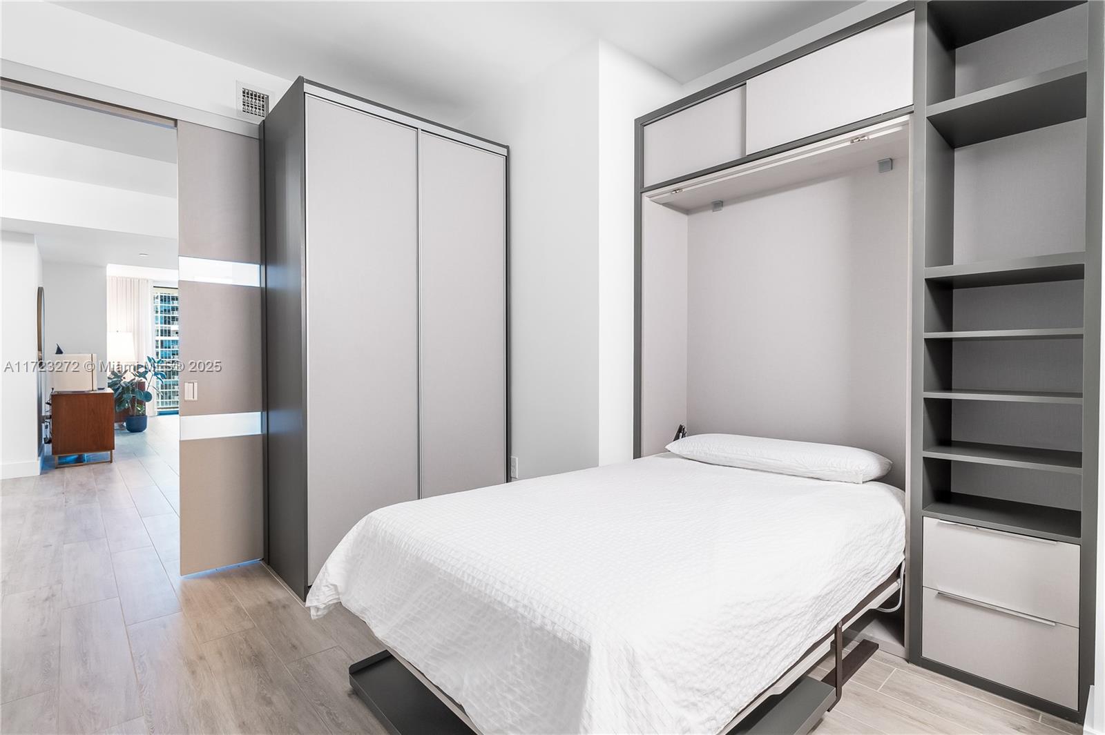 Nestled in the vibrant center of Brickell, this east-facing, high-floor residence combines urban energy with peaceful place for you to retreat. Experience living just steps away from the neighborhood's most cherished dining, shopping, and entertainment destinations. The spacious layout of an 04-line residence features a private elevator upon entry with two en-suite bedrooms with stunning bay & skyline views, along with a versatile den which could serve as a third bedroom, nursery, office, media room, or additional storage. Thoughtful upgrades include custom countertops, elegant wallpaper, & a built-in storage unit with a Murphy bed for hosting guests. Living at 1010 Brickell is a community where you can enjoy exceptional amenities designed for relaxation, wellness, and family fun.