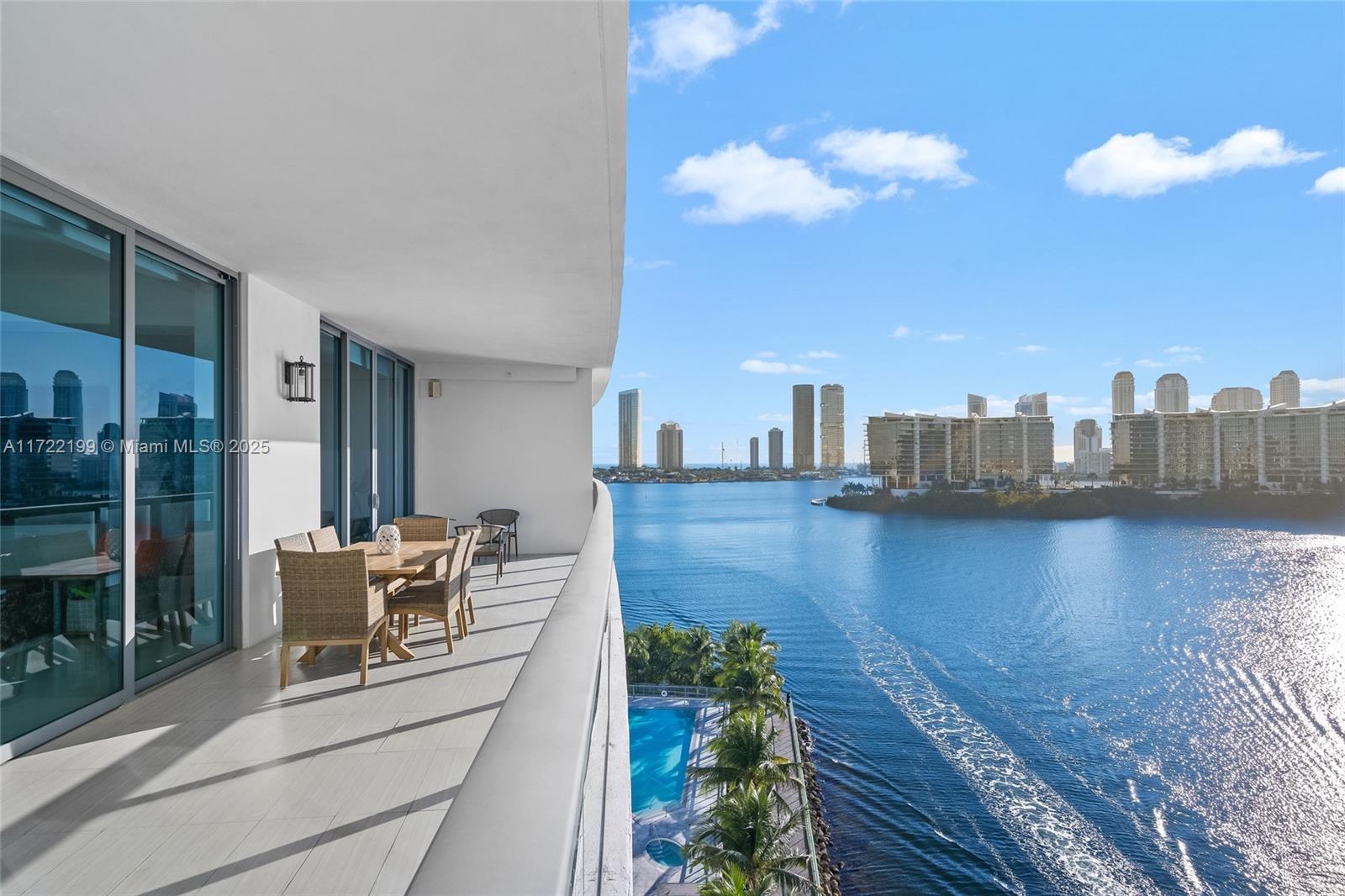 Experience luxury living in this stunning 3-bed, 4.5-bath 2,559 SF residence at Echo Aventura. This gorgeous flow-through condo features unobstructed bay views, a versatile and spacious floor plan, private elevator with foyer entry, motorized blinds, and a spa like primary bathroom. The oversized balcony, complete with a summer kitchen and BBQ, is perfect for entertaining. The gourmet kitchen is equipped with Sub-Zero appliances, a Wolf gas range and sleek finishes. Echo Aventura features 190 exclusive residences spread across five acres of prime waterfront. Enjoy resort-style amenities such as an infinity-edge pool, state-of-the-art fitness center, spa, concierge service, valet, and even a pet-friendly walking area.