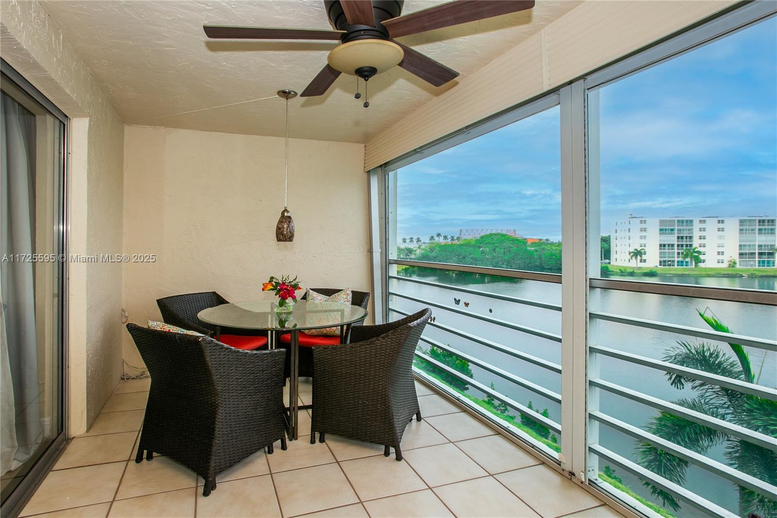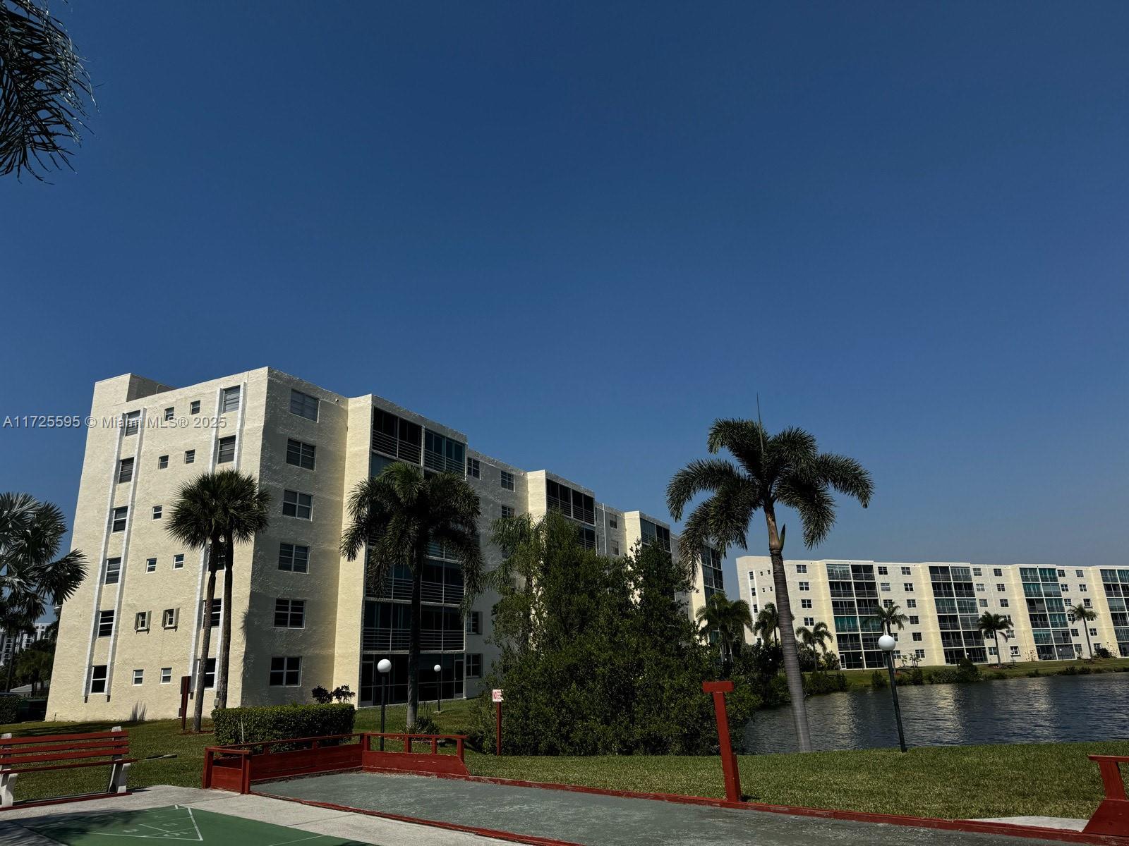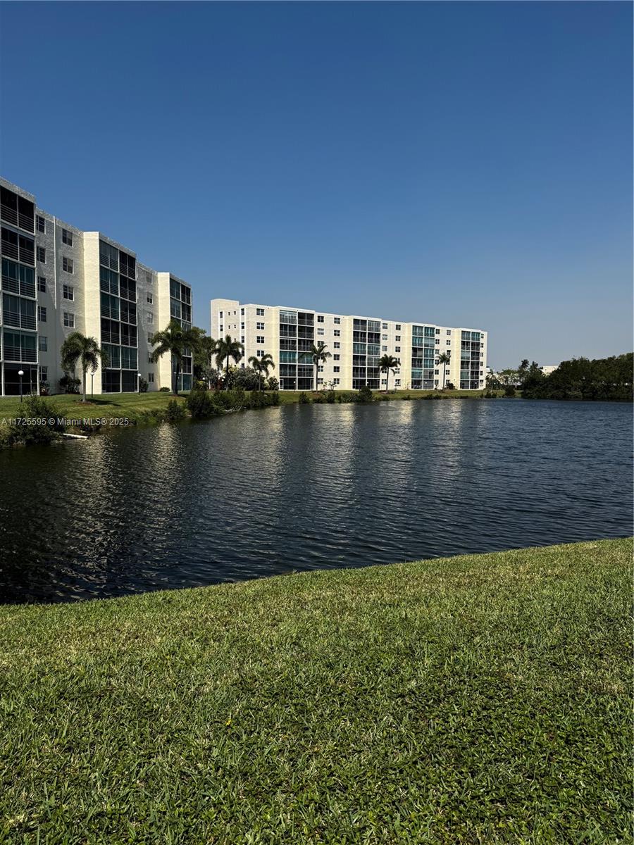 Stunning condo offers a breathtaking view on the lake and boasts all -tile flooring in elegant porcelain quality .The open and updated kitchen features granite countertops, stainless steel appliances, and plenty of natural light. Impact windows in the kitchen and bedrooms, along with shutters, provide added security, the bathrooms are beautifully updated, and the spacious master bedroom offers serene water views and overlook the pool area , the building is impeccably maintained , the unit is conveniently located nest to the pool and BBQ , perfect for relaxation and social gatherings .Situated just 6 minutes from Dania Beach ,this condo is close to restaurants, Publix and plenty of entertainment located in a 55 + active community .Motivated sellers