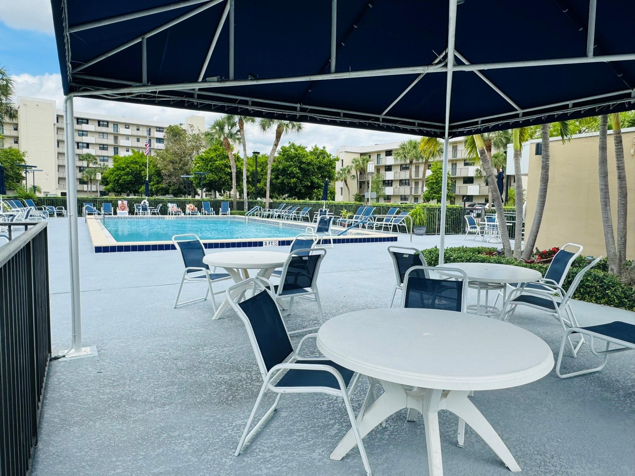 MOTIVATED SELLER! Spectacularly updated 2 bedroom 2 bath. One of a kind. Washer and dryer inside the unit, golf view, and a lot of light coming in. Contemporary style, finishes at their finest including kitchen with white cabinetry, stainless appliances and quartz counters. Elegantly styled baths. New windows, new shutters, remote controlled blinds in living room. Pets are allowed only as service animals. ESA welcome. Large walk-in closets + extra storage. Renovated gym, pool, tennis, shuffleboard, putting cage and Bocci court. On the grounds of Deer Creek Golf Club with its reasonable annual greens fees or daily rates and public clubhouse. (No Membership Required To Purchase). Association requires minimum 20% down.