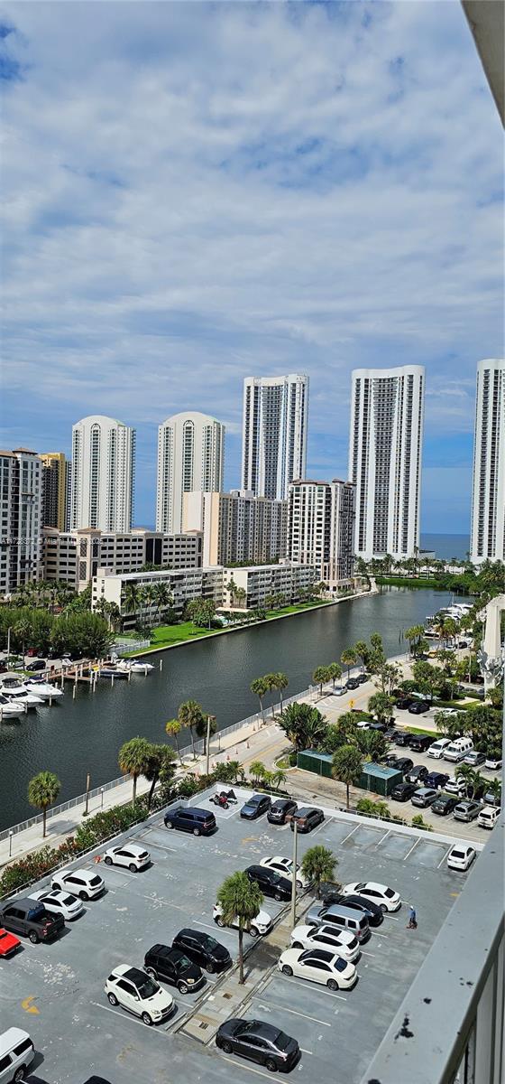 Excellent view of the city of Sunny Isles, Canal, and Intracoastal. Nice, remodeled, brand-new laminated waterproof floors. The unit is rented until August 2025 for $2,150.00. The Tenant is willing to vacate the property or stay. No pets and no rentals the first 2 years of ownership.