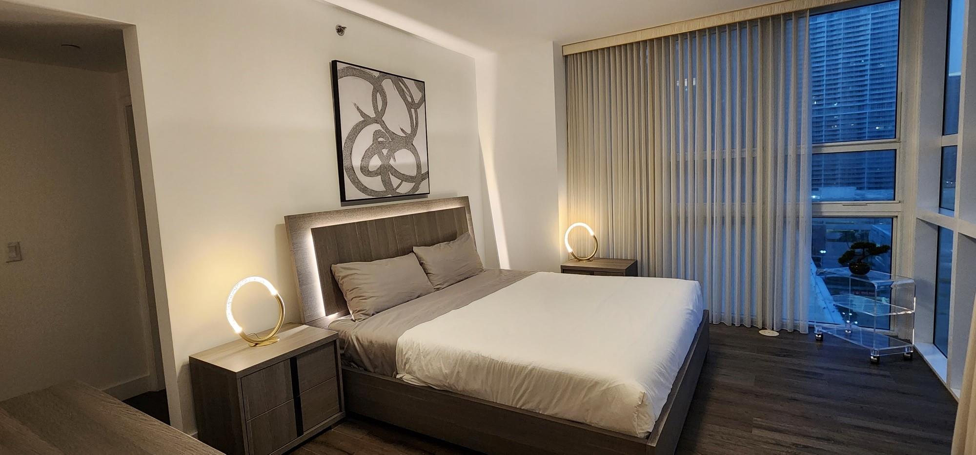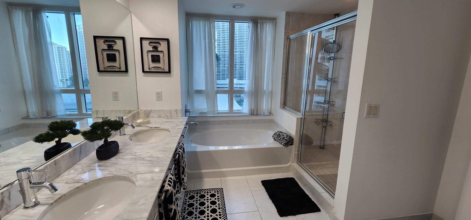 Best line in the building, furnished 2BR 2 1/2 BA, corner unit with floor to ceiling impact glass. Newer kitchen appliances, newer washer/dryer. Beautiful wood tile floors, view of Brickell Key and water. Wrap around balcony. Lots of amenities, beautiful pool deck, fully equipped gym, business center with conference rooms, club room, kids play area, and much more. Enter through an upscale lobby, a real gem. Great building location within walking distance of Brickell Key, Biscayne bay, restaurants and shops. One of the best buildings in Brickell. Can be sold with or without furniture.