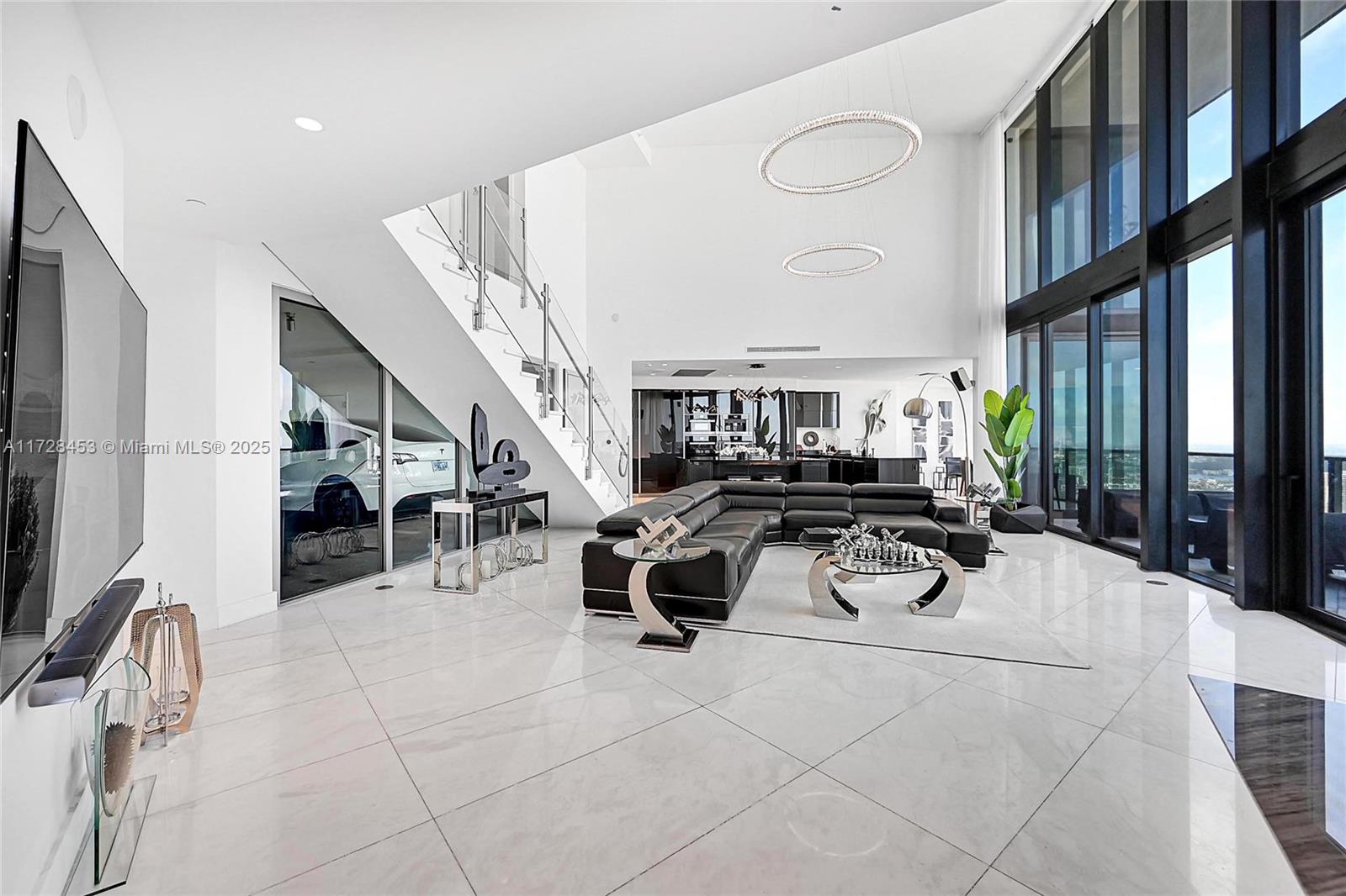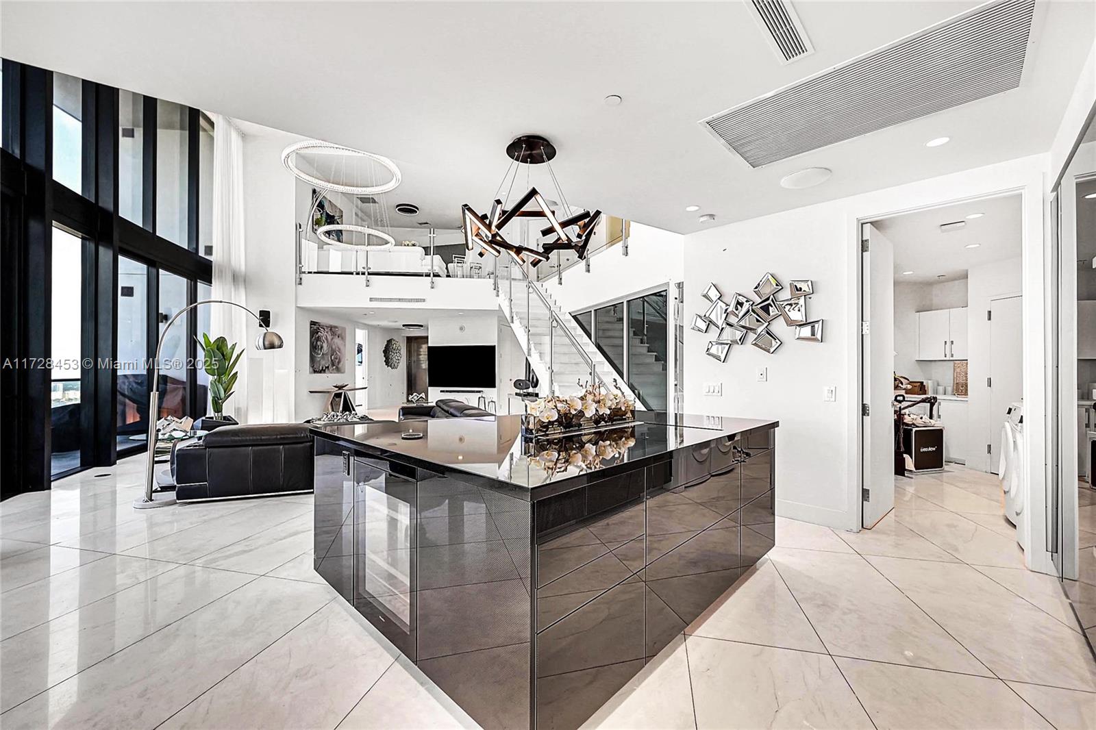 Dramatic price reduction. Sky-High Sophistication at Porsche Design Tower. Welcome to the pinnacle of oceanfront luxury in this jaw-dropping two-story duplex, soaring from the 50th floor of the world-renowned Porsche Design Tower Miami. This ultra-luxe sky residence features 3 spacious bedrooms, 4.5 opulent bathrooms, and boasts dramatic 21-foot ceilings that flood the space with natural light and panoramic southwest water views as far as the eye can see. Seamlessly blending innovation with indulgence, the iconic Sky Garage with private car elevator lets you drive directly into your home—an experience reserved for the truly elite. The expansive private terrace is tailor-made for grand entertaining or serene relaxation, bringing indoor-outdoor living to dazzling new heights