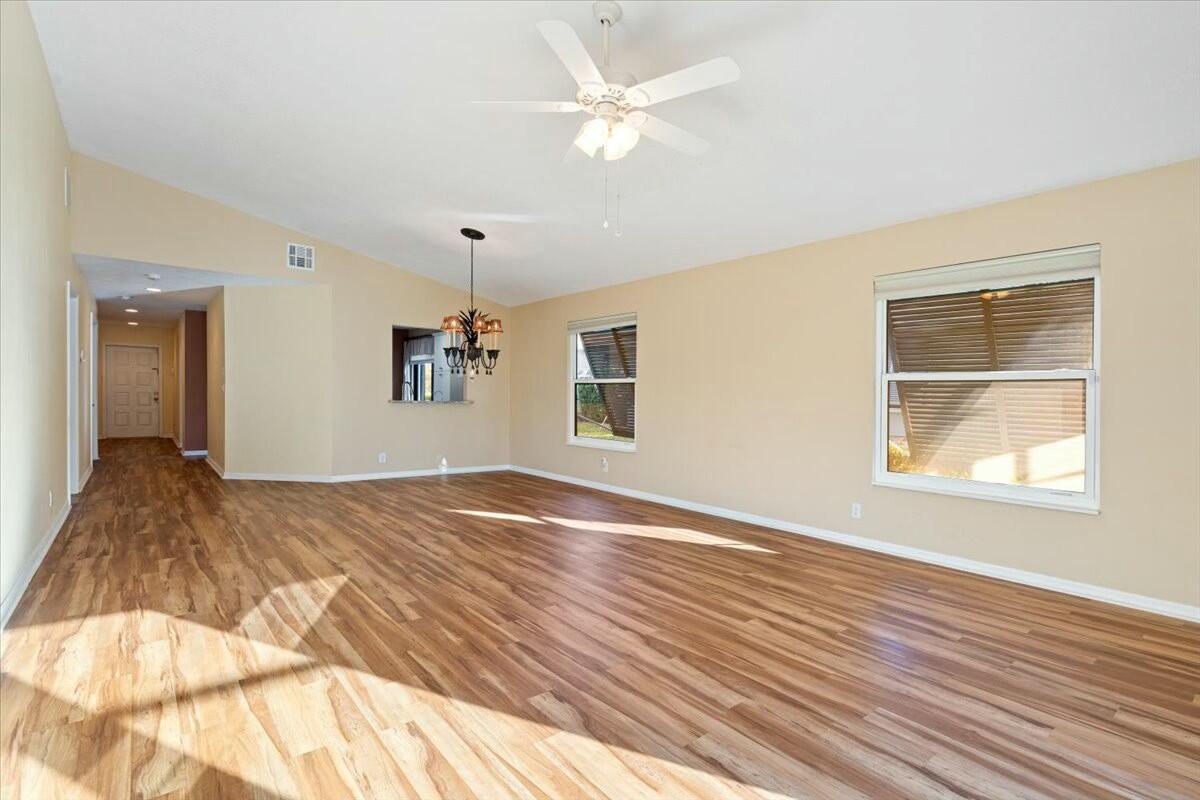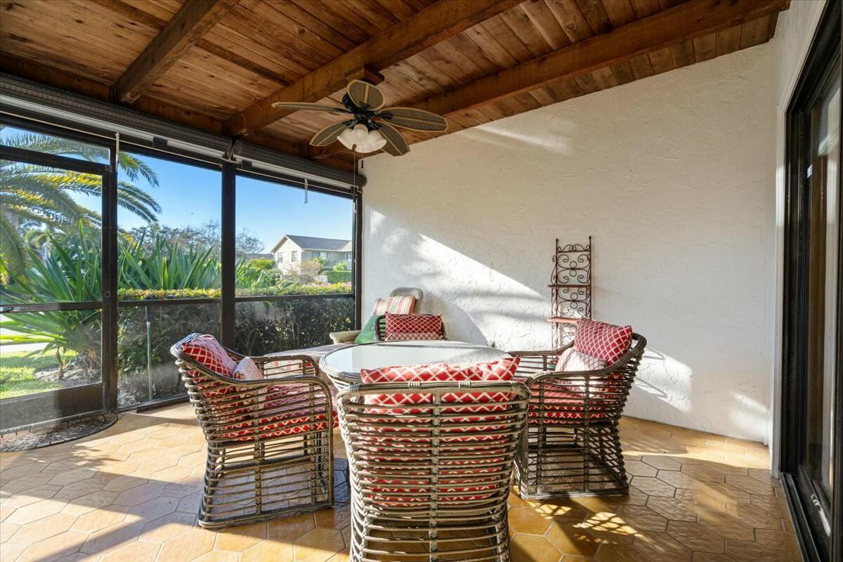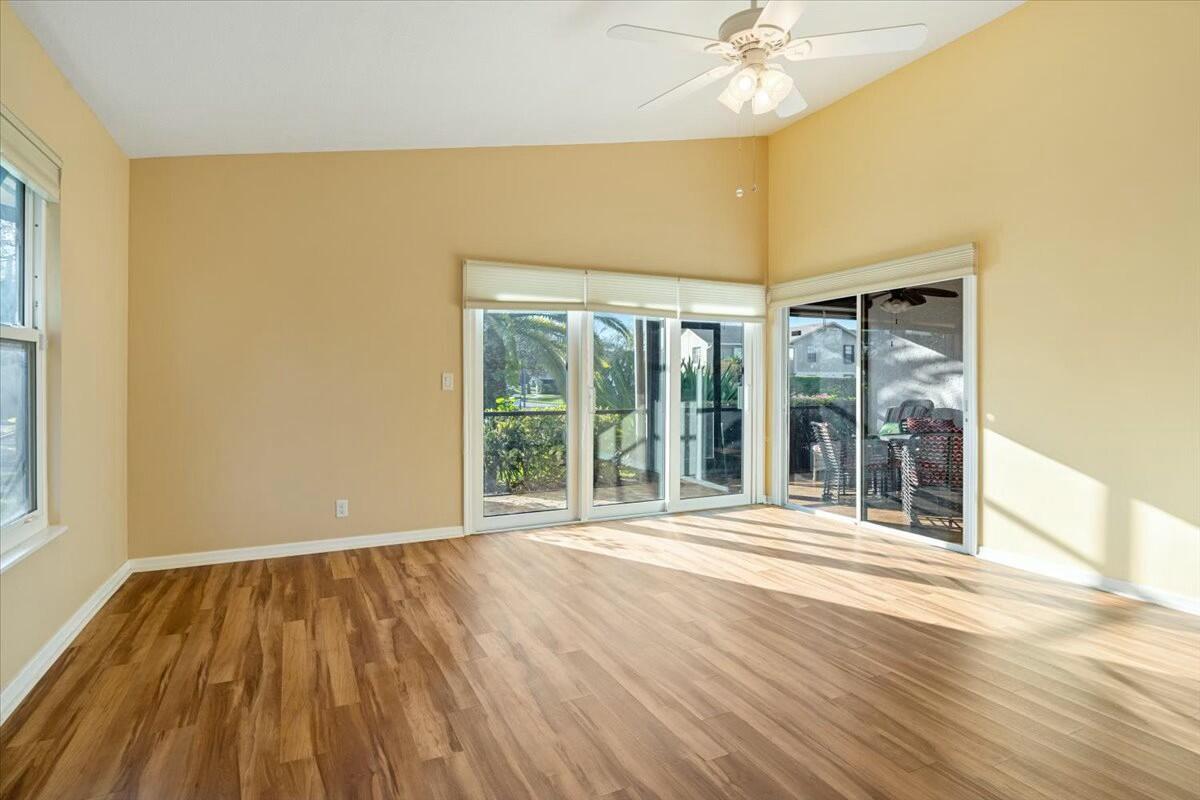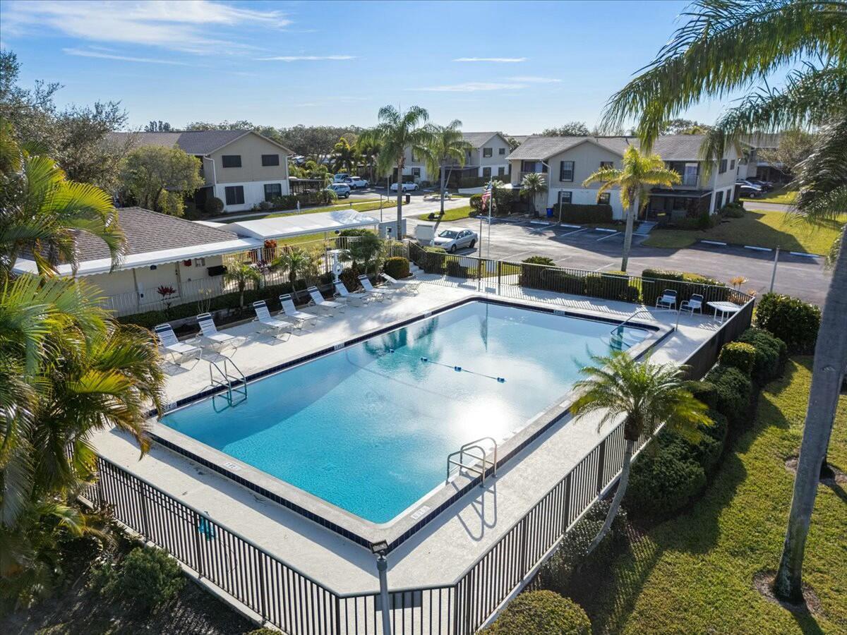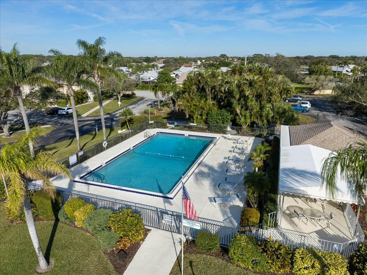 This is a charming two-bedroom, two-bathroom, one-level villa which offers a blend of comfort and updates. All ages welcome. The home features a spacious one-car garage with a full size washer and dryer. 1 year old air conditioner. The updated kitchen features sleek granite countertops, while newer vinyl plank flooring adds elegance and durability throughout the home. Some impact windows to add safety and energy efficiency. The back screened lanai is ideal for relaxing or entertaining, all within a peaceful and quiet community. Conveniently located between Stuart and Jupiter. Residents have access to fantastic amenities, including a public golf course, community pool, and tennis courts, and only a short drive to the Hobe Sound beach, making this villa a true retreat. HOA fe