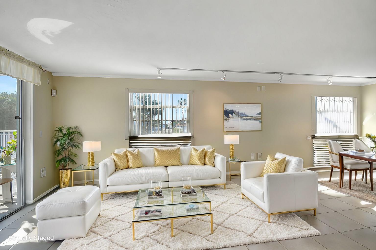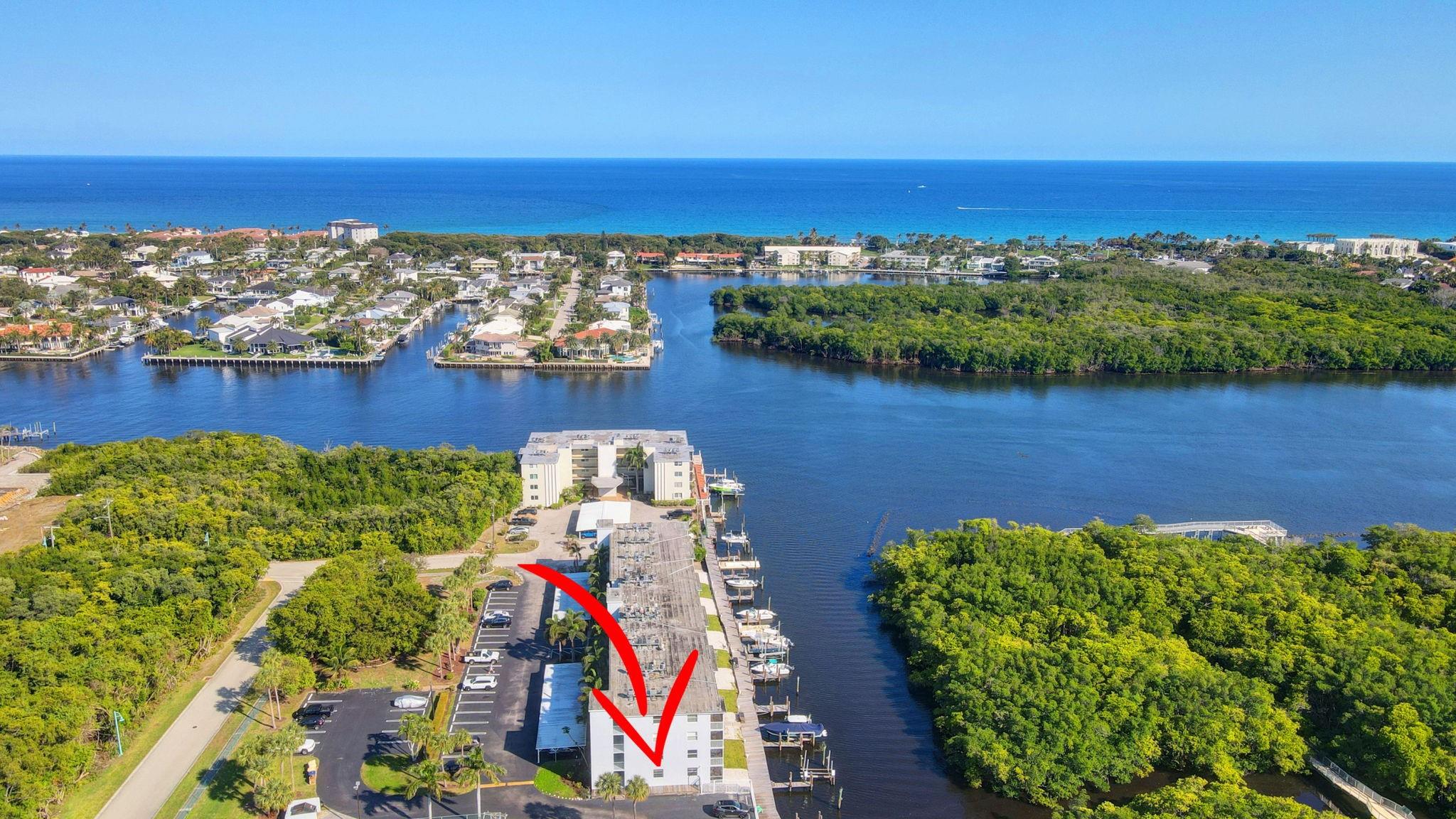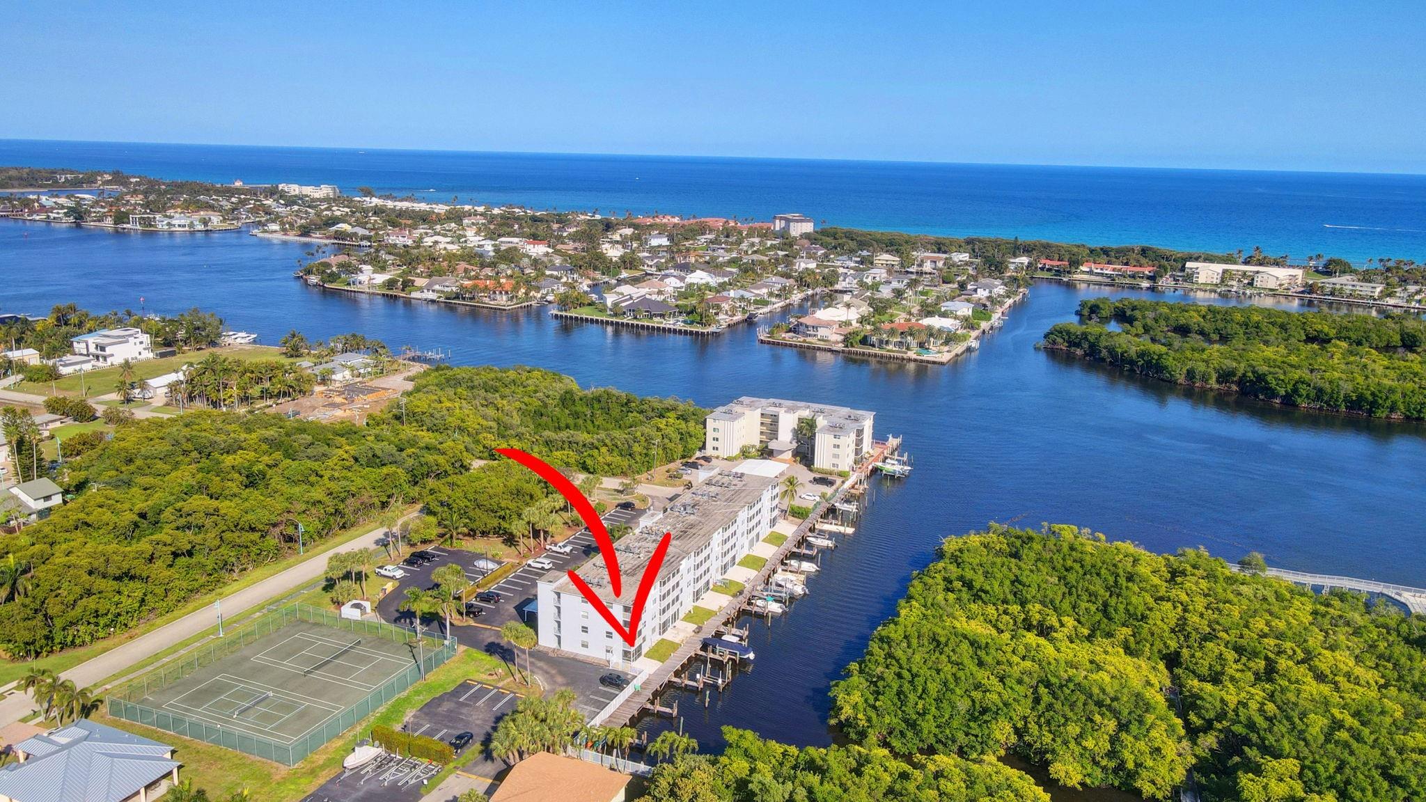 BOATERS DREAM!! Ocean access. Step out your door to your deeded boat dock wi/ lift. Take a short boat ride or walk to restaurants, parks. Close to beaches and Trendy Atlantic Ave. Tennis courts, pool and newly renovated clubhouse. Beautiful Sunrises from the primary bedroom and your screened private patio. Corner unit has side windows that makes it light and bright. Kitchen w/ white cabinets, white appliances, new dishwasher, recessed lights and pantry cabinet, tile thru out living areas, new vinyl flooring in guest bedroom. Crown molding. Convenient first floor location with parking spot next to your condo. Washer/Dryer can be added to Closet. Some pictures are staged. actual pictures are also posted. May qualify for 5% down.