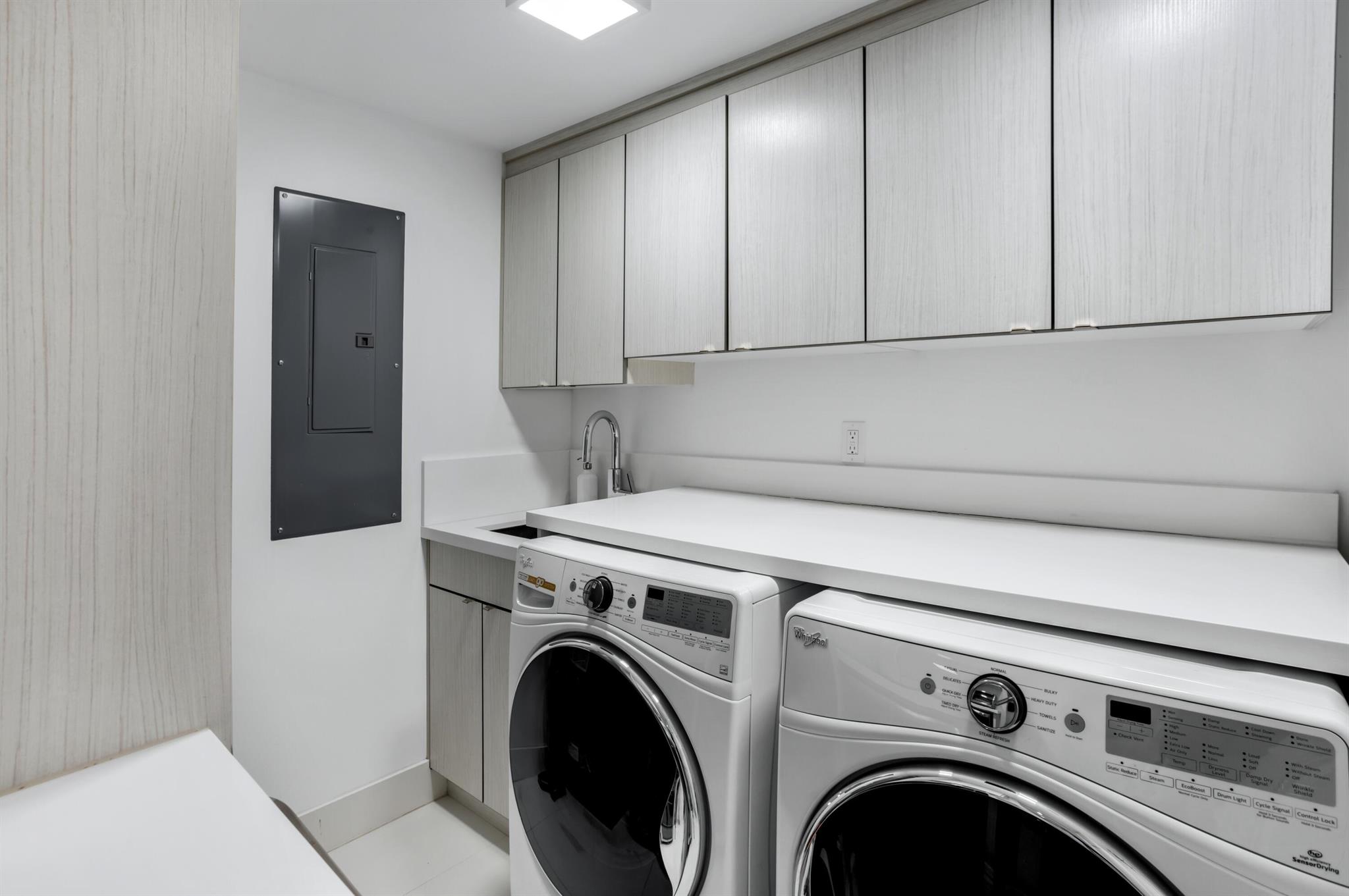 Stylish, renovated 6th floor apartment with sweeping views of the ocean to the East and beautiful Intracoastal views to the West. The stunning open plan kitchen facing a glass-enclosed wine wall, features top-of-the-line appliances and exquisite finishes. The spacious master suite has panoramic water views and oversized built-in closets plus a large en suite bathroom. The guest bedroom also shares lovely views and has a good-sized closet and bathroom. Sloans Curve is a luxury condominium with an excellent management team, gym, manned gate and full-time doorman. Assigned garage parking for one car and one additional space on the premises.