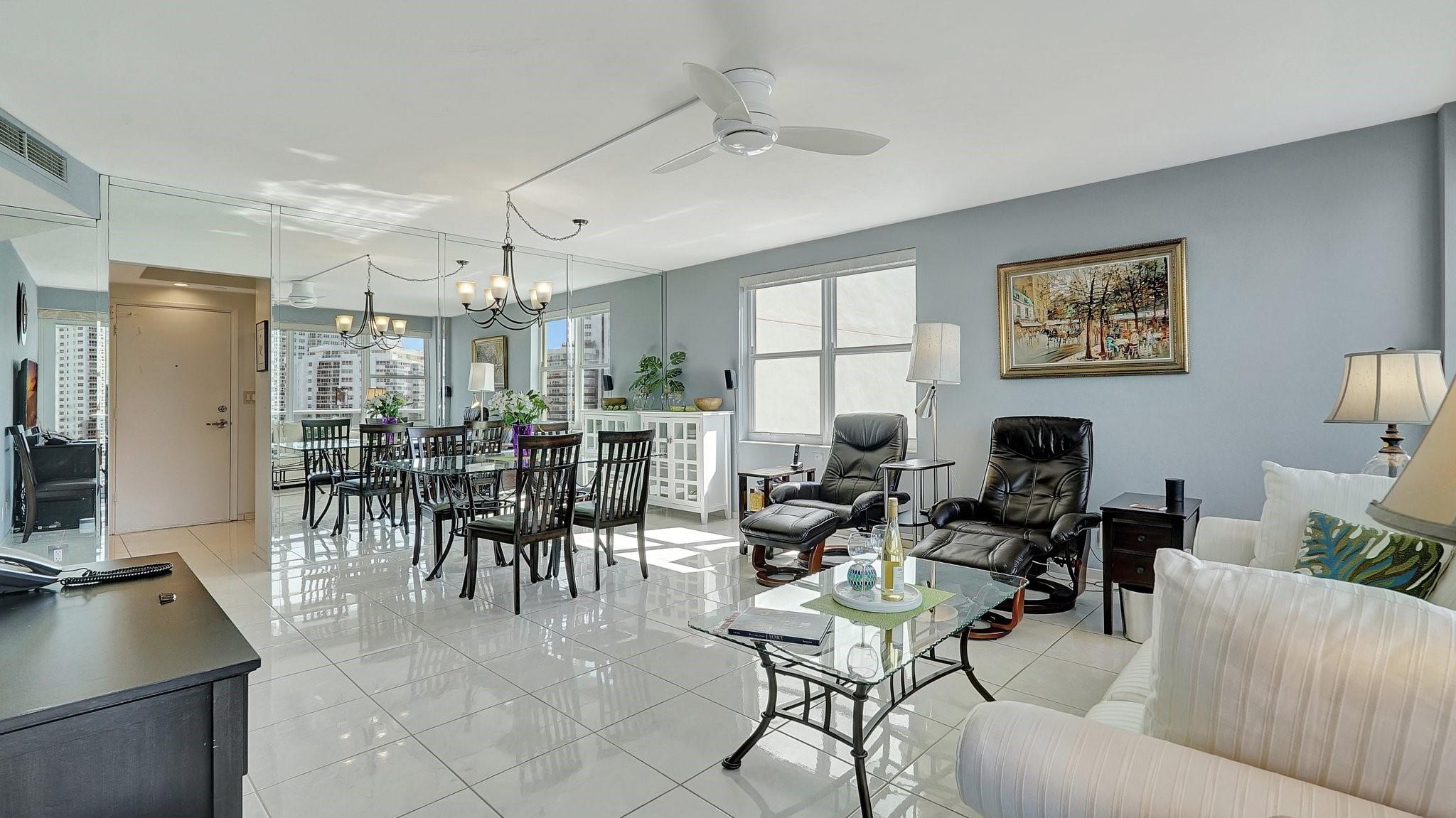 CORNER RESIDENCE - OCEAN VIEWS- FULLY FUNDING RESERVES Move in Ready - fully furnished. Beautiful interior with numerous upgrades. Nicely updated kitchen featuring built-in filtered water system, LED lights, ceiling fan & extra storage. Ceramic tiles floors throughout this apartment. Both bathrooms provide roomy showers. NO UPCOMING ASSESSMENTS IntraCoastal Clubhouse with a brand new dock, gorgeous new outdoor decking, chairs & bbq grills, new roof and raised seawall. Close to restaurants, retail, grocery, entertainment, golf and boating. Full amenity concierge building with porte cochere entrance, heated pool, bocce ball, fitness center, bicycle room on 5 acres resort like setting. 24/7 security, on site management, 55+ community, cash only. There is no land lease.