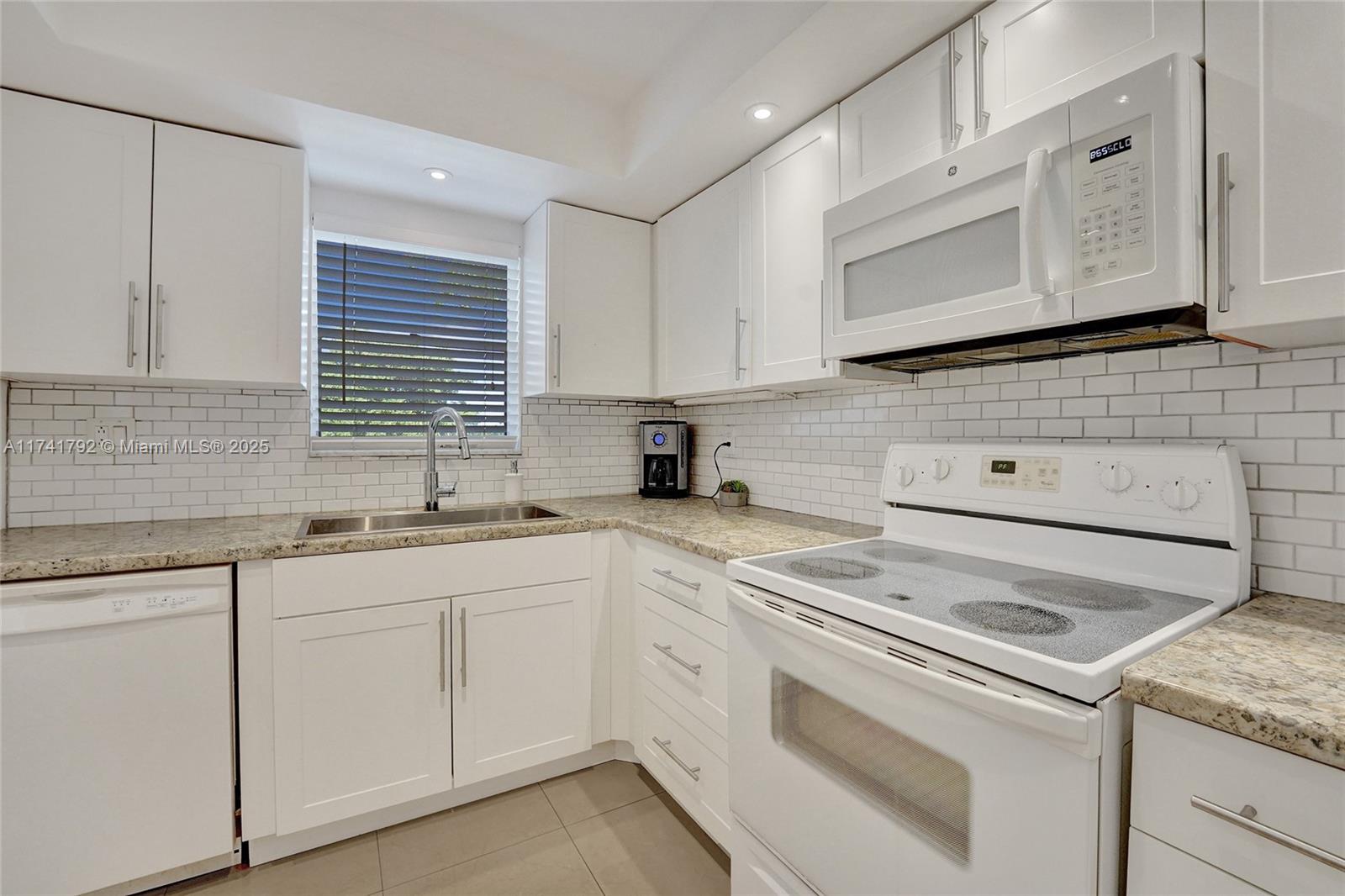 Seller is offering to cover the first six months of the Buyer’s HOA dues at closing. This Corner Unit is light, bright and airy, boasting porcelain tile flooring throughout, updated bathrooms with walk-in showers, and a spacious master suite with two walk-in closets and a tub-shower combo. Tastefully updated, this 2-bedroom 2-bath features modern white cabinets with ample counter space, pull-out drawers, recessed lighting, tiled backsplash, and a stackable washer and dryer in the unit right off the kitchen. This unit is MOVE IN ready, Fully furnished. Enjoy peace and privacy in this quiet end unit with a serene garden view. 50 yr recertification completed, NO ASSESSMENTS. Building has reserves, newer roof (2020), heated pool, security gate...cable and internet included. 55+ community.