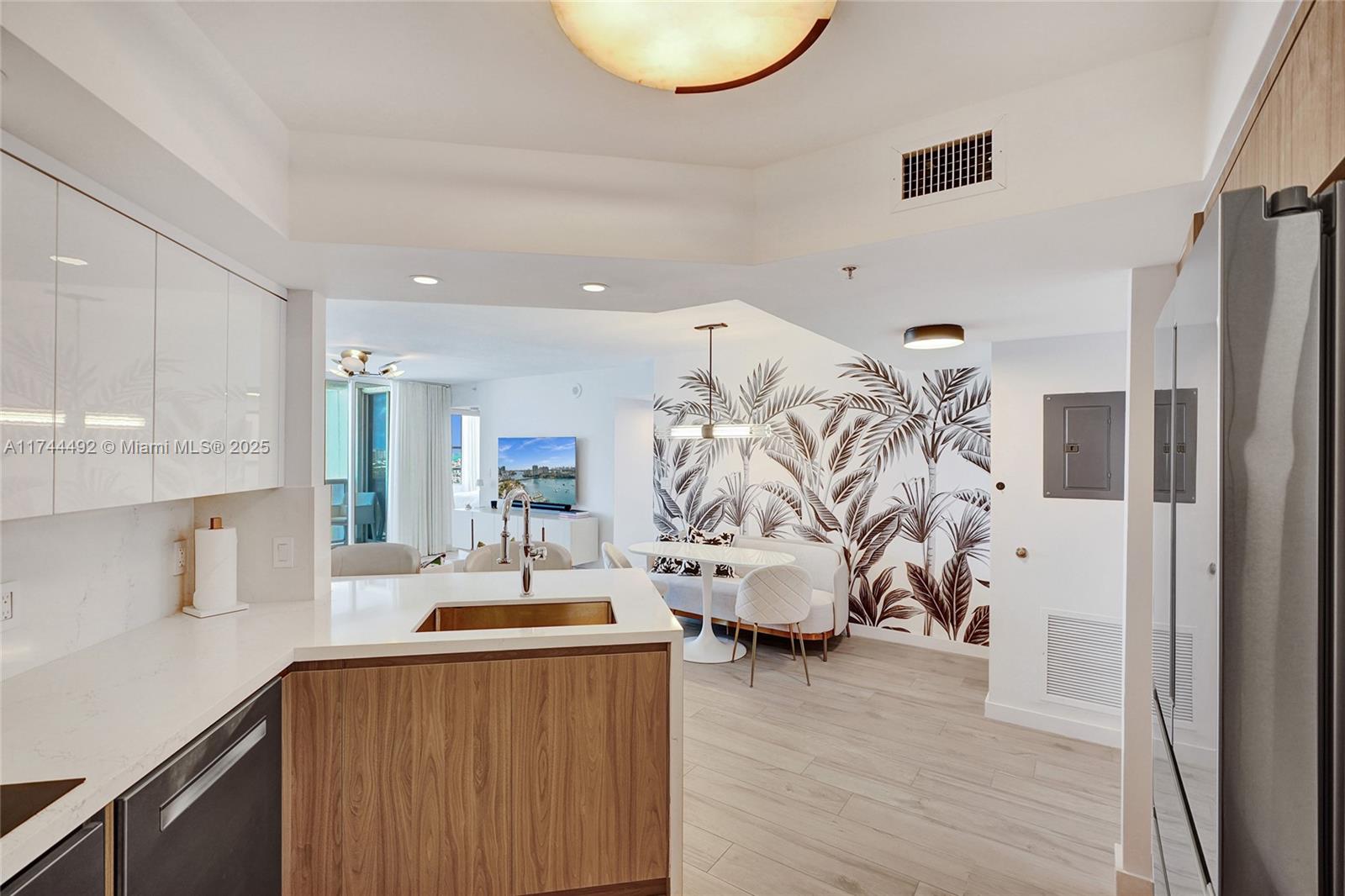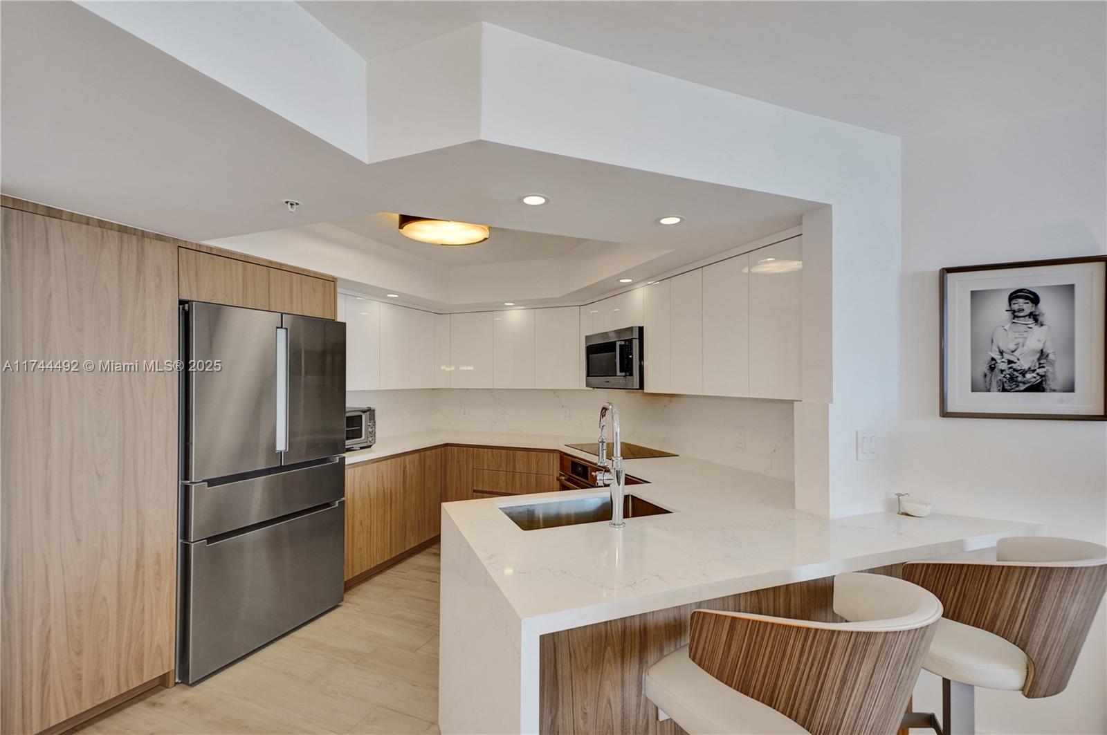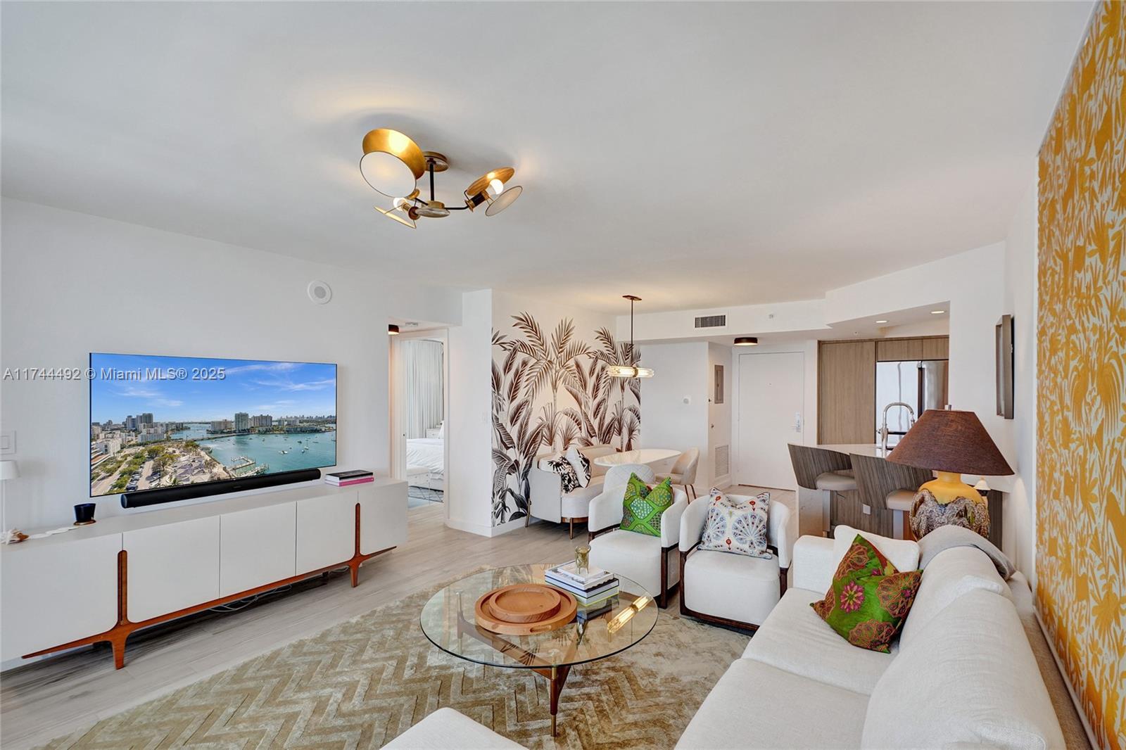 Unparalleled modern 2 bed, 2 bath luxury condo, meticulously renovated by acclaimed designer Anil Kakar. This SE corner gem offers breathtaking bay, ocean, & downtown skyline views from 2 balconies. The one-year gut renovation boasts a turn-key, five-star hotel finish. Gourmet kitchen features custom cabinetry, waterfall quartz countertops, Bosch stainless steel appliances, & porcelain floors. Spa-inspired baths showcase exquisite marble tile, new fixtures, smart toilets, and upgraded plumbing, electric and lighting throughout. Enjoy resort style amenities: 24-hour security, attended lobby, valet, 2 pools, gym, sauna, hot tub, and clubhouse. Neighborhood perks include Fresh Market, Publix, ample dining options, shopping, bayfront park, gyms, and more. Discover the luxury of Sunset Harbour!
