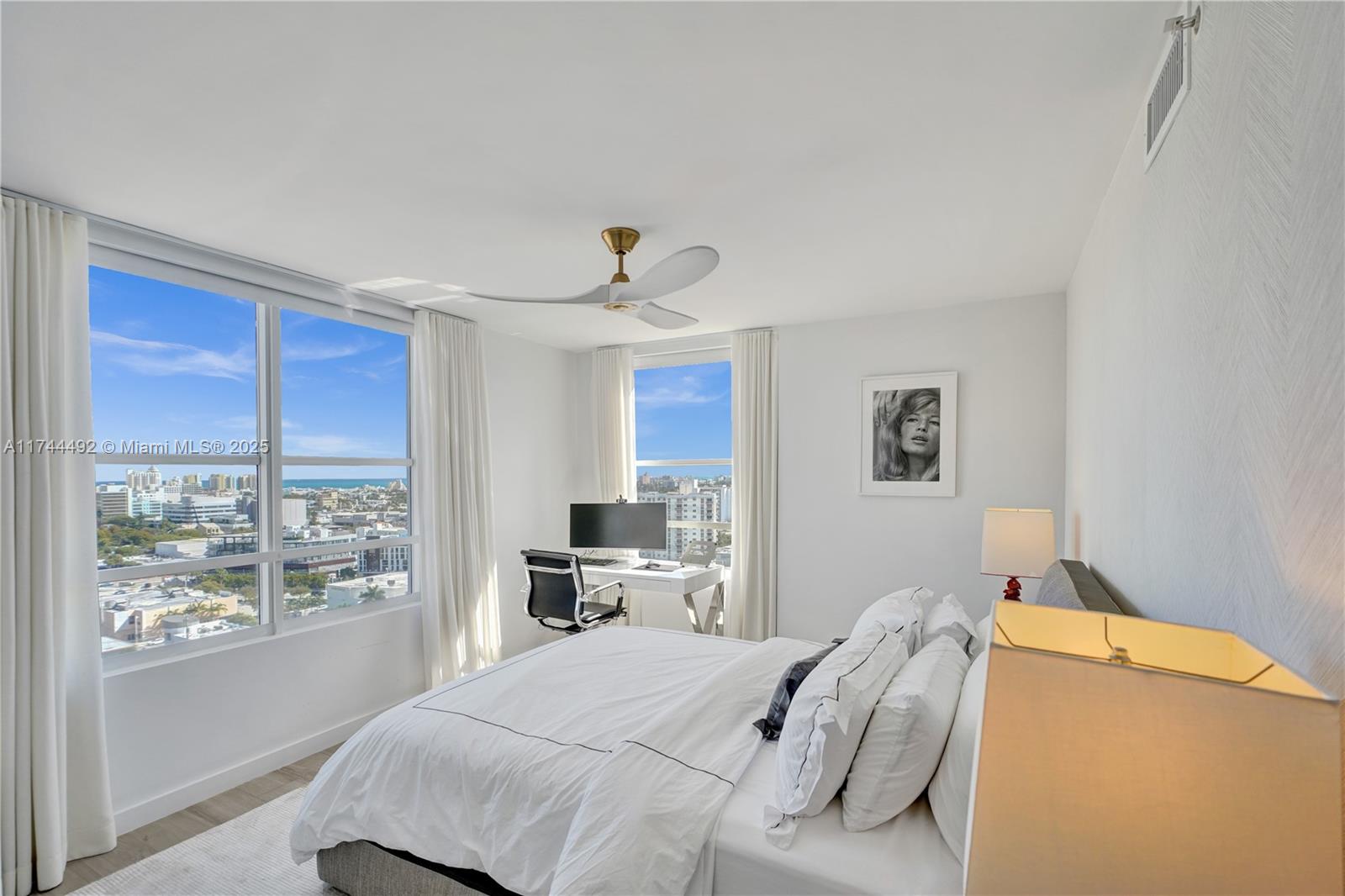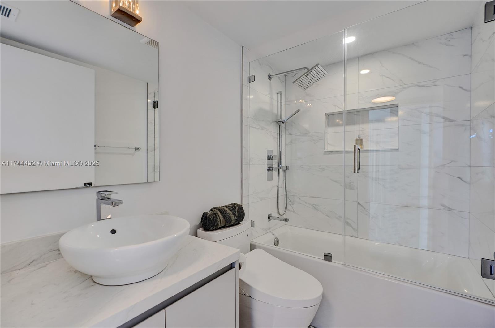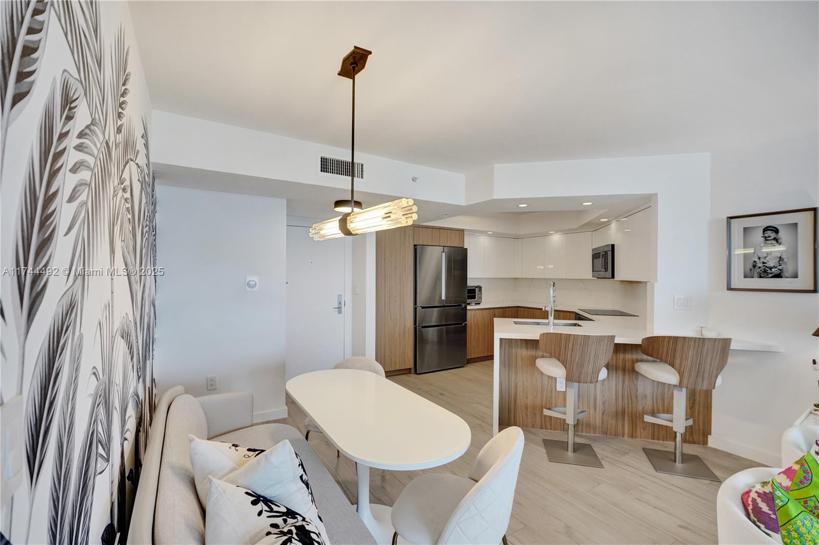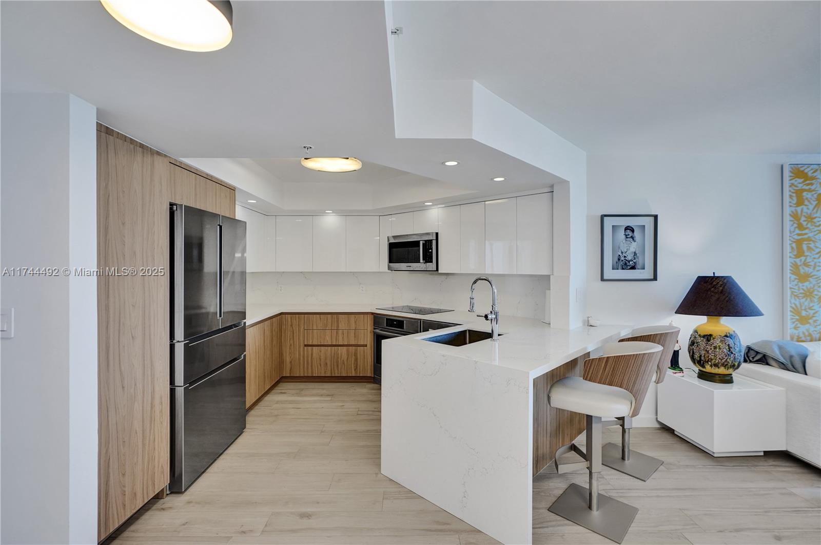 Unparalleled modern 2 bed, 2 bath luxury condo, meticulously renovated by acclaimed designer Anil Kakar. This SE corner gem offers breathtaking bay, ocean, & downtown skyline views from 2 balconies. The one-year gut renovation boasts a turn-key, five-star hotel finish. Gourmet kitchen features custom cabinetry, waterfall quartz countertops, Bosch stainless steel appliances, & porcelain floors. Spa-inspired baths showcase exquisite marble tile, new fixtures, smart toilets, and upgraded plumbing, electric and lighting throughout. Enjoy resort style amenities: 24-hour security, attended lobby, valet, 2 pools, gym, sauna, hot tub, and clubhouse. Neighborhood perks include Fresh Market, Publix, ample dining options, shopping, bayfront park, gyms, and more. Discover the luxury of Sunset Harbour!