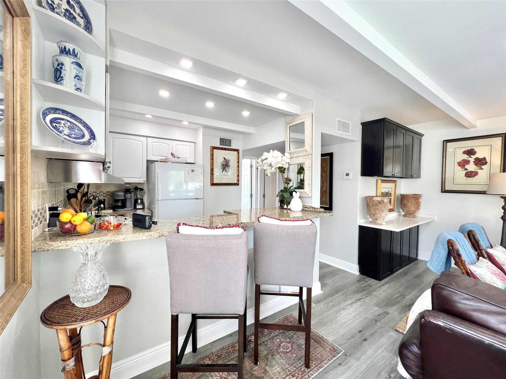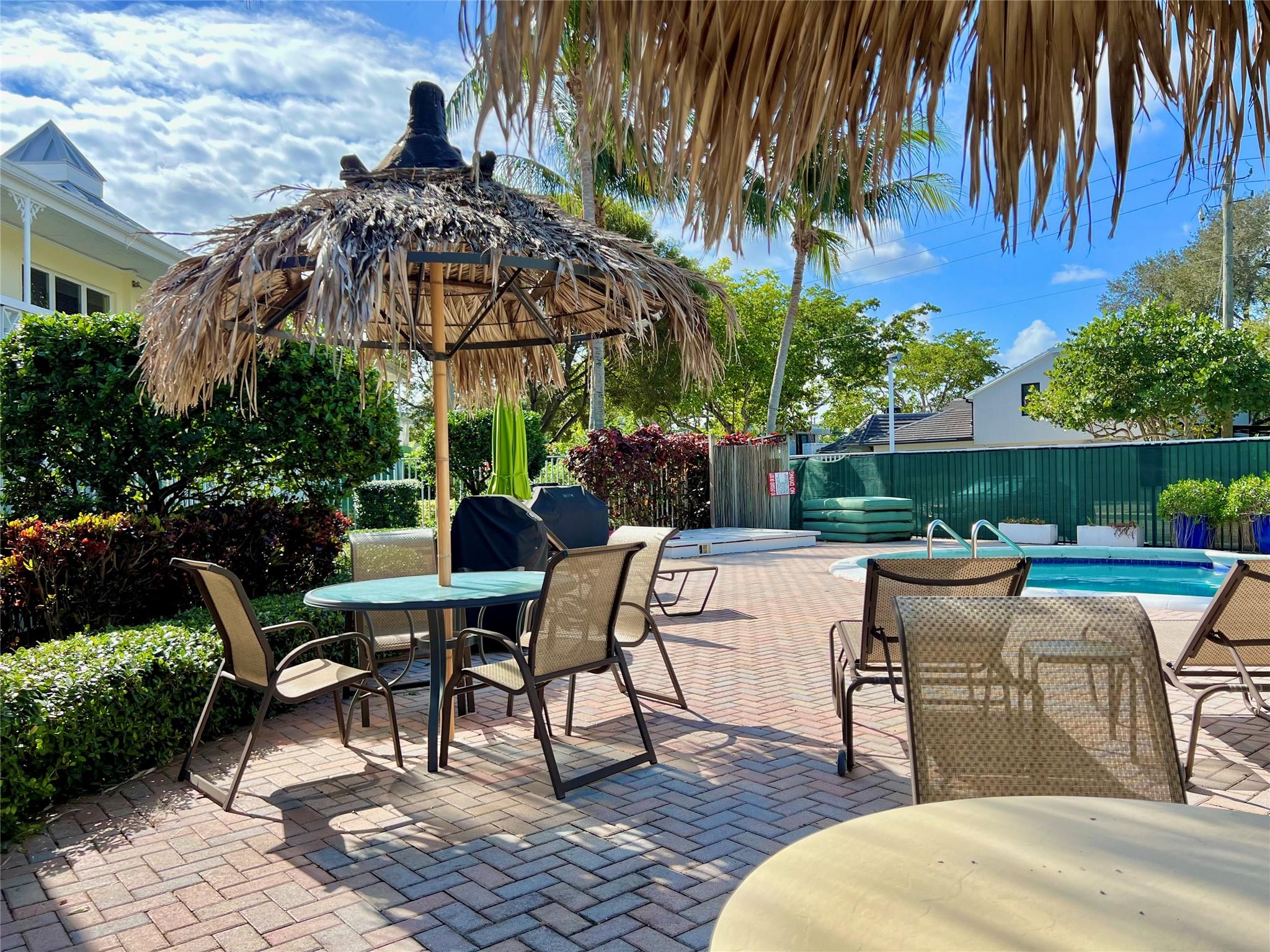 Fantastic opportunity to own a charming one-bedroom, one-bathroom unit in a boutique, Key West-style community, just half a block from the vibrant restaurants, shops, and entertainment on Wilton Drive. This second-floor corner unit features an updated interior with a semi-private patio just outside your door, impact windows and doors, abundant natural light, and a view of the pool area from the living room. With vinyl floors throughout, a heated pool, and BBQ area, the beautifully landscaped and well-maintained grounds make this the perfect place to call home. Pet-friendly (under 20 pounds, with approval), with laundry and additional storage on-site. One assigned parking spot. NO LEASE - 1st 6 months. Tenant occupied until November 1.