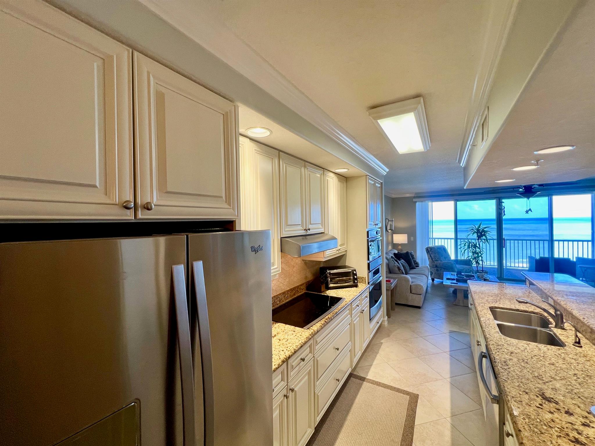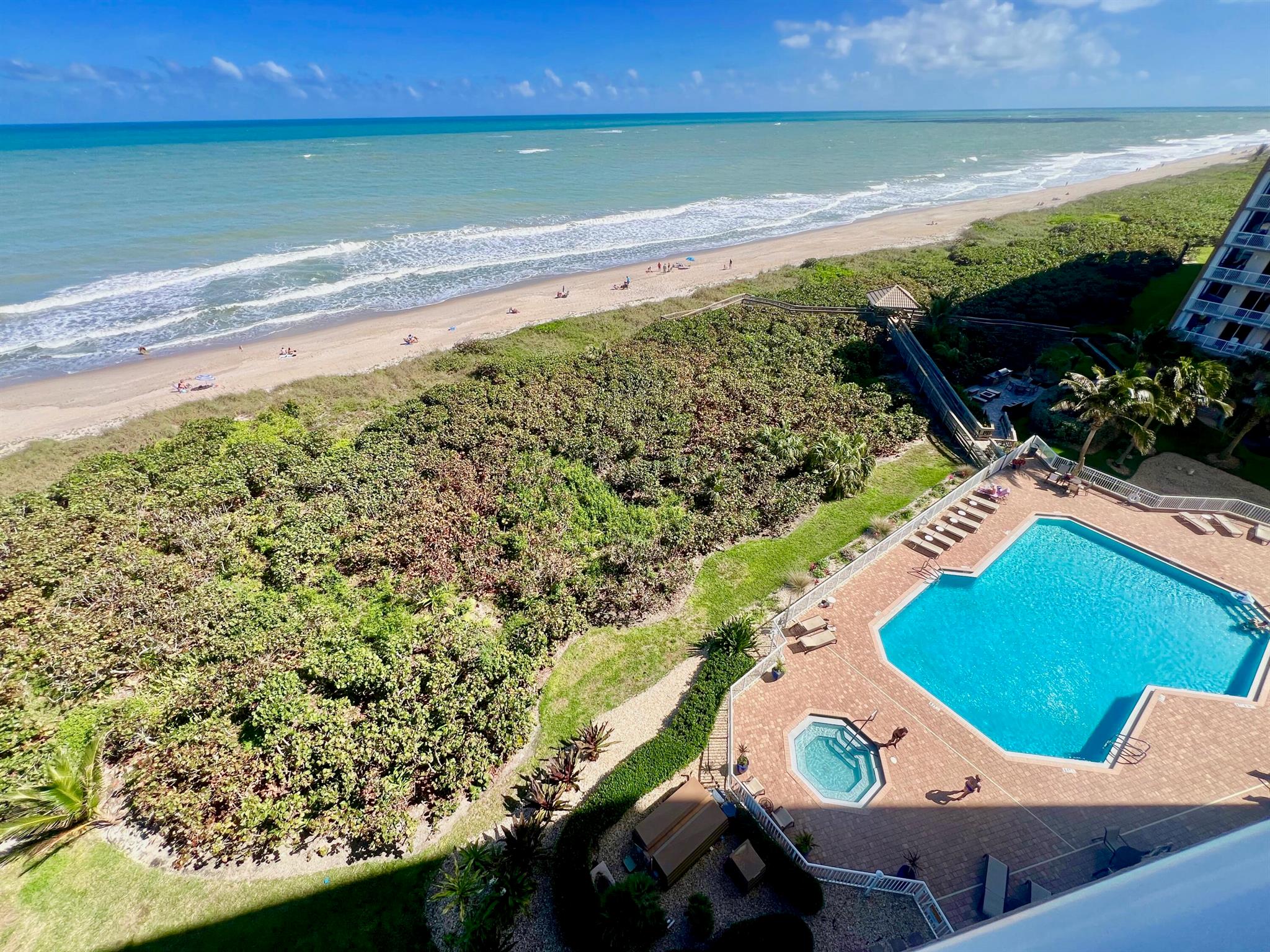 A Spectacular Oceanfront Condo on North Hutchinson Island where the beaches are quiet, the roads are not crowded and you have an entire santuary of park land across the street for walking, biking, kayaking, etc. This 8th floor unit has gorgeous views of the Ocean and the Indian River with all its inlets and islands. Over 2300 square feet of living space with an additional 200 sq ft balcony overlooking the Ocean. The chefs kitchen has white cabinetry w/ soft close, granite, stainless steel appliances and opens to the Dining rm & Living rm. The gated community features a pool, hot tub, gym, clubroom, tennis/pickle ball, billiards room, outdoor fire-pit, & grill area. Two Dogs under 30 pounds allowed.