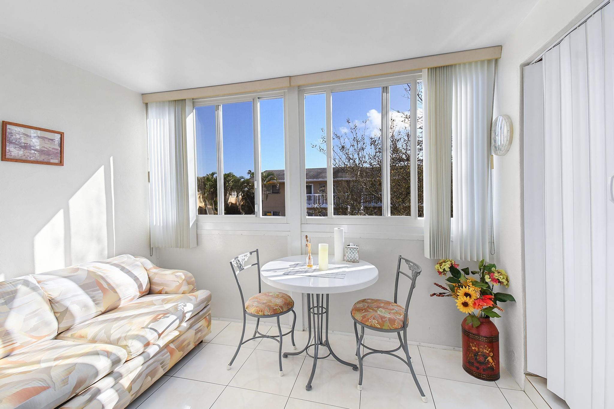 A MUST SEE. THIS LOVELY RENOVATED FURNISHED CONDO HAS NEWER KITCHEN CABINETS (NEWER RANGE, MICROWAVE AND DISHWASHER), AC 2024 + NEWER HOT WATER HEATER. IMPACT WINDOWS + ENCLOSED FLORIDA ROOM. UPDATED BATHROOM VANITIES AND TOILETS. IN UNIT WASHER AND DRYER. LOCATED ON THE SECOND FLOOR AND VERY CLOSE TO THE POOL. ONE RESERVED PARKING. MONTHLY DUES INCLUDE WATER AND BY THE END OF 2025 WILL ALSO INCLUDE INTERNET. ASSOCIATION APPLICATION $150 FOR MANAGEMENT + $40 FOR VILLAGE ROYALE. INTERVIEW REQUIRED+ 700 MIN CREDIT SCORE. THIS COMMUNITY ALLOWS ONE RENTAL PER 12 MONTHS PERIOD AFTER ONE YEAR OF OWNERSHIP. EAST OF I-95 AND VERY CLOSE TO BEACHES AND ALL SERVICES. EASY ACCESS TO EITHER PALM BEACH OR FORT LAUDERDALE AIRPORT. PERFECT FOR VACATION OR A COZY PLACE TO CALL HOME. COME HAVE A LOOK!
