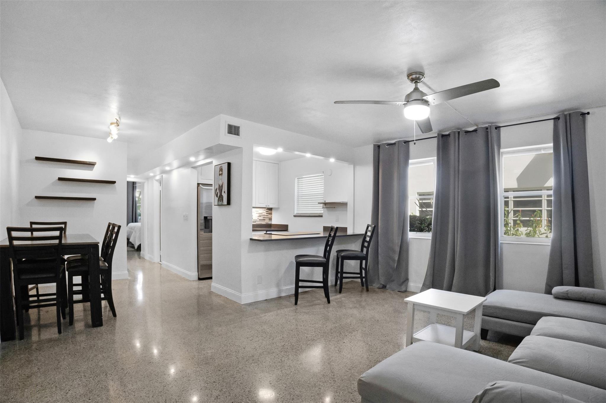 SELLER FINANCING AVAIL!!! A Boutique MidCentury Treasure just walking distance from the Fabulous Fort Lauderdale Beach and just minutes from the Water Taxi, Hugh Taylor Birch State Park, Las Olas Blvd, and Coral Ridge Yacht Club & Coral Ridge Country Club. Fully Furnished, 2BR, 1BA, corner unit, recently renovated including new A/C and in-unit Washer & Dryer. Heated pool, assigned parking & breathtakingly lush tropical grounds! Maint includes land lease, maint paid quarterly. THIS IS A CO-OP NOT A CONDO. CASH SALES ARE TYPICAL IN CO-OPS; however, max allowed mortgage at 50% of sale price. No rentals. Seller financing with 50% down per coop rules.