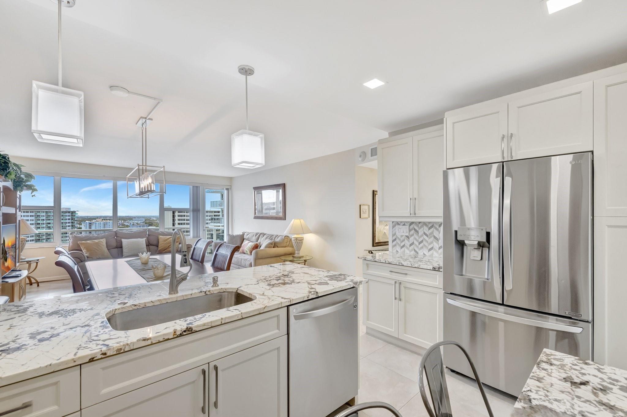 GORGEOUS RESIDENCE - OCEAN & INTRACOASTAL VIEWS - Open Chef's kitchen features Granite countertops, LG appliances and custom inlaid backsplash, perfect for at home luxury or entertaining. Bath features a seamless step in shower. Custom closets throughout. A beautiful move in ready home where you can watch ships going out to sea from the comfort of your living room. Resort style community on 5+ acres with full amenities. 24/7 security, heated pool, bocce ball, fitness center, bicycle room and IntraCoastal Clubhouse only for this building. 55+, Cash only. Maintenance. includes high speed fiber optic internet & cable. Building requires: one buyer to be age 55 or over, min 700 credit score, min $71,785 annual income, Cash only, no renting.