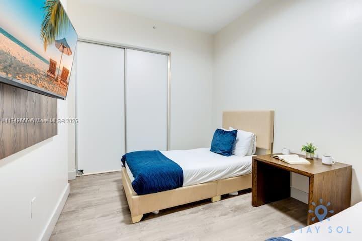Beautiful unit 1 Bedroom + 1 Den + 1 Full Bath. The Den has 2 beds and TV!! Living- Dining room with 1 sofa bed. Fully furnished and equipped at Costa Hollywood Resort in Hollywood Beach! Modern kitchen, balcony with ocean and intracoastal view. Amazing rooftop with bar, pool, jacuzzi, lounge areas and spectacular views of the city, Intracoastal and beach. No Rental Restrictions! Association fee includes Cable TV, Internet, water, gym, Electric, facilities, amenities. Unit management by Stay Sol. Just steps away from the Hollywood Boardwalk with many restaurants, bakery, shops, sports. Don't miss the opportunity to stay in paradise!!
