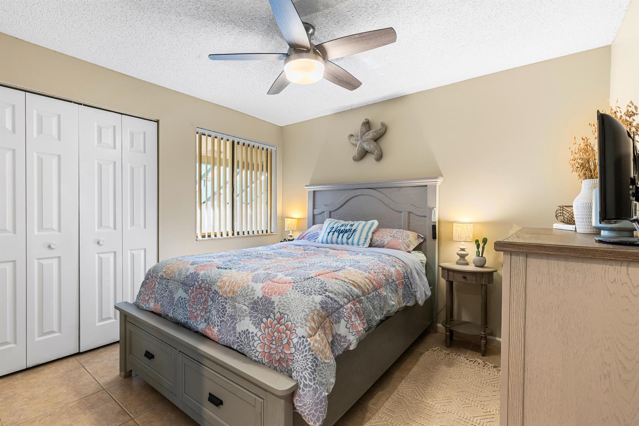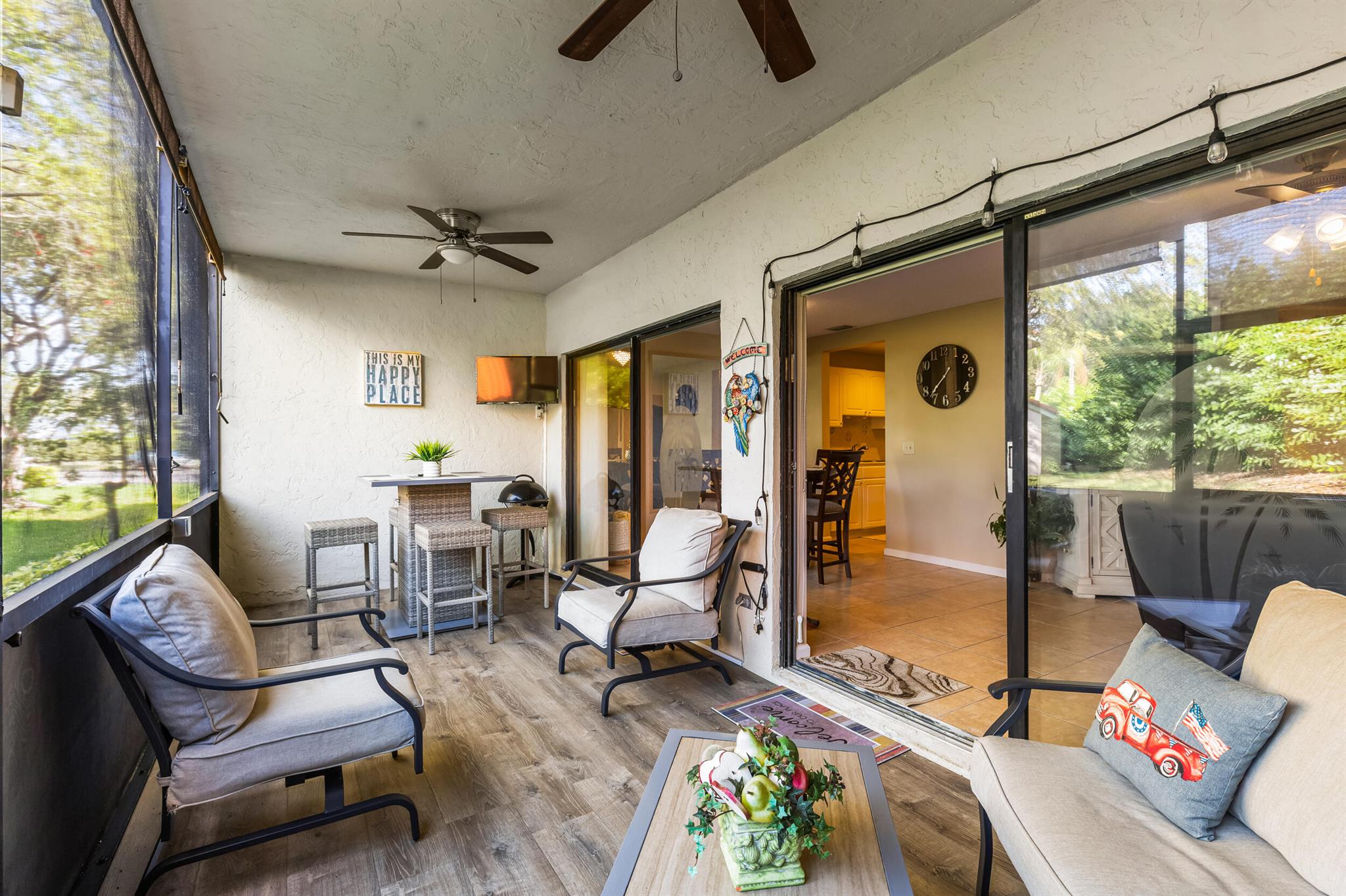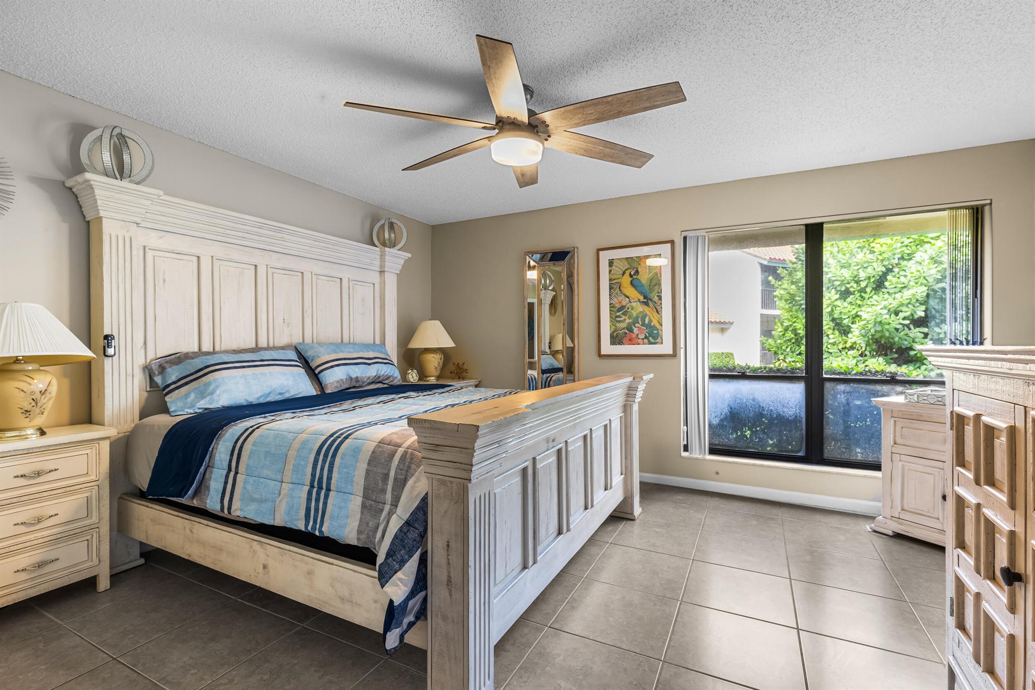 Welcome to this charming first-floor condo located in the highly sought-after PGA National! This home features an updated kitchen with stainless steel appliances, granite countertops, a stylish backsplash, and a beautiful island perfect for entertaining. Beautiful porcelain tile flows throughout, and the one-car attached garage with storage area. A private entrance leads into an open dining/living area, and the two bedrooms are split for privacy. Enjoy the screened-in, covered patio for outdoor relaxation. Community pool is located only a few steps away from the house.Maintenance fees include all building maintenance including the roof, landscaping, insurance, water/sewer, and cable. As a resident,