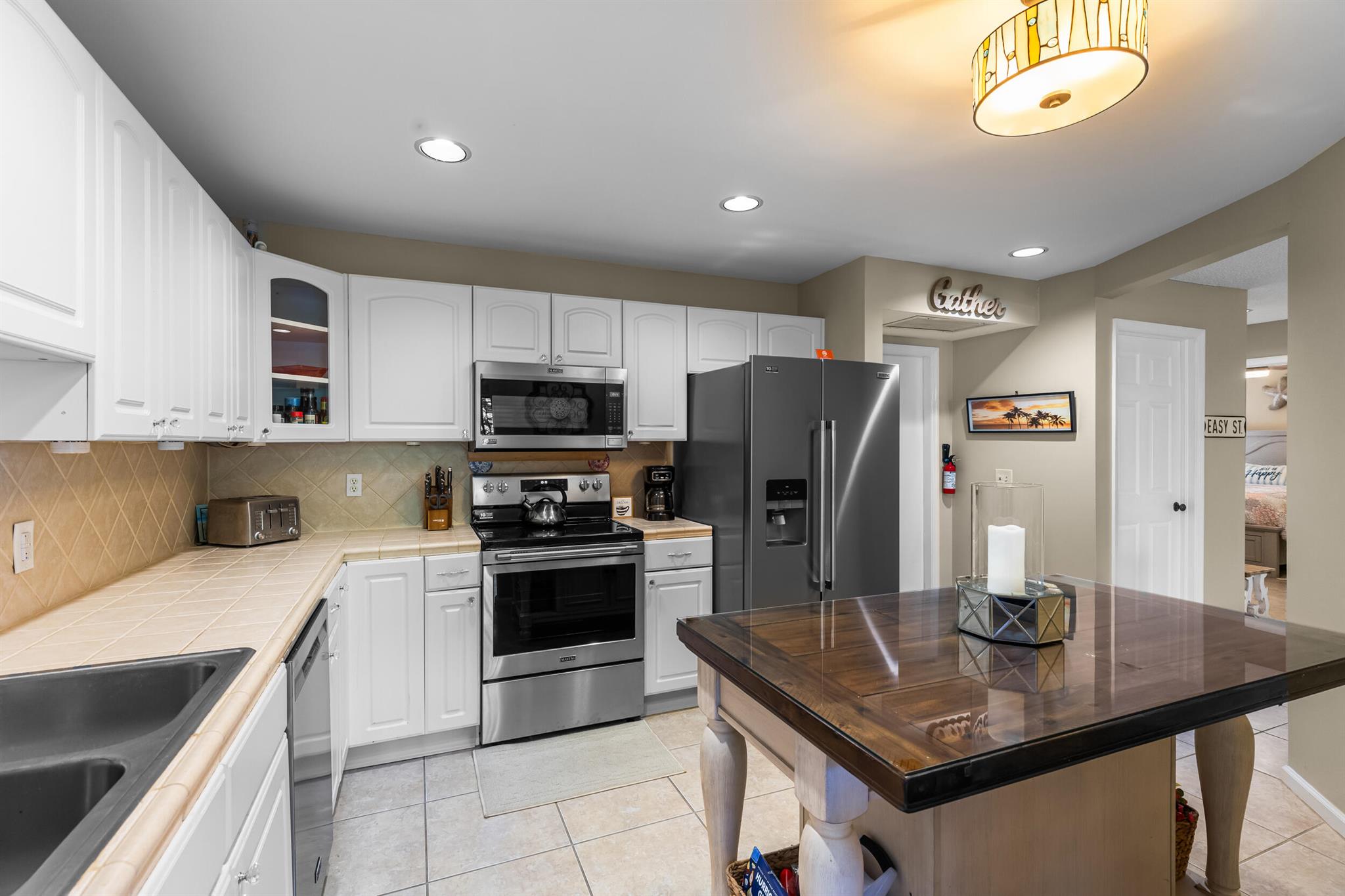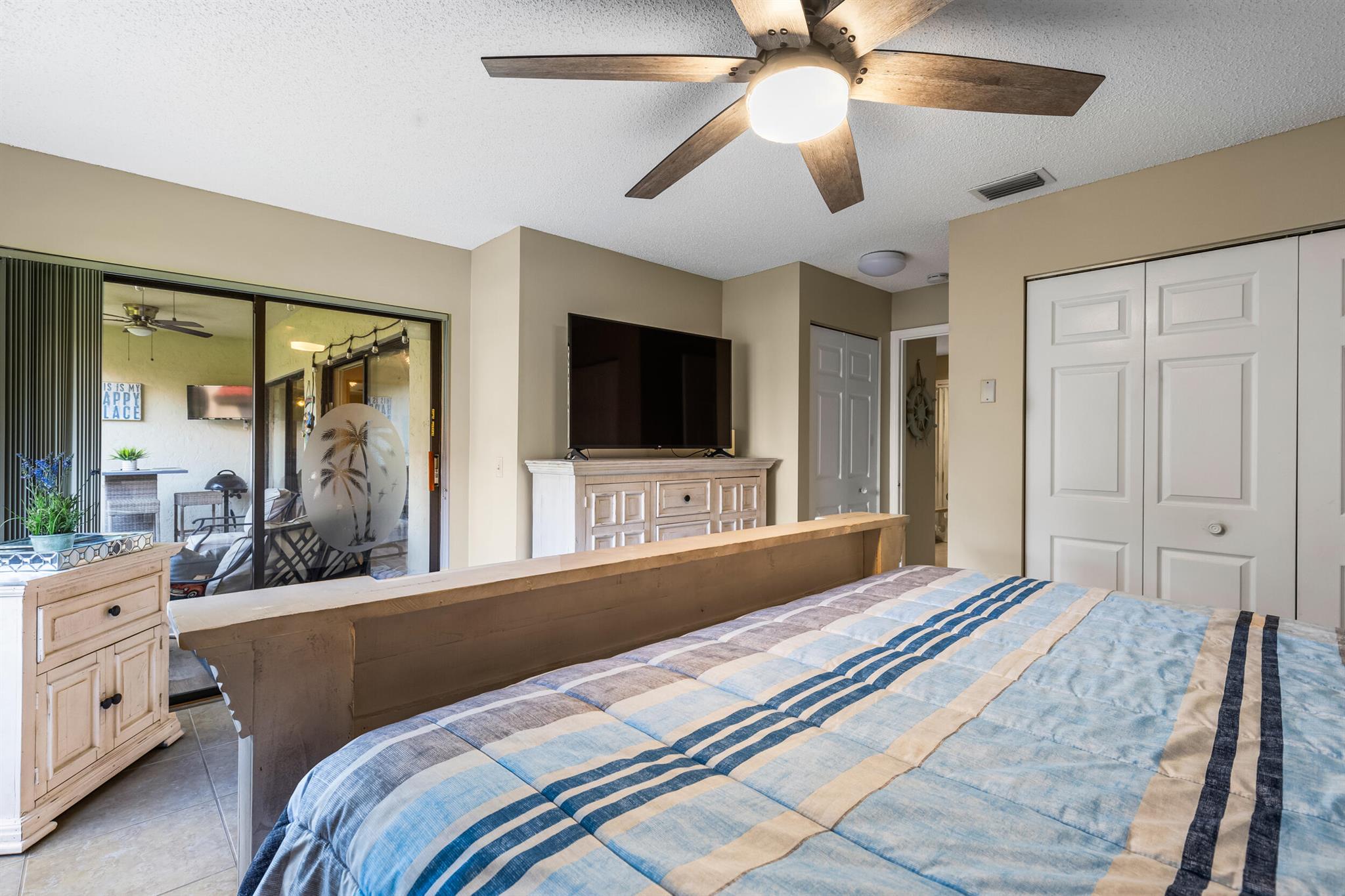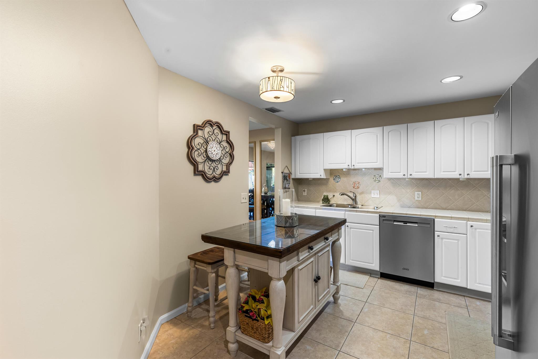 Welcome to this charming first-floor condo located in the highly sought-after PGA National! This home features an updated kitchen with stainless steel appliances, granite countertops, a stylish backsplash, and a beautiful island perfect for entertaining. Beautiful porcelain tile flows throughout, and the one-car attached garage with storage area. A private entrance leads into an open dining/living area, and the two bedrooms are split for privacy. Enjoy the screened-in, covered patio for outdoor relaxation. Community pool is located only a few steps away from the house.Maintenance fees include all building maintenance including the roof, landscaping, insurance, water/sewer, and cable. As a resident,