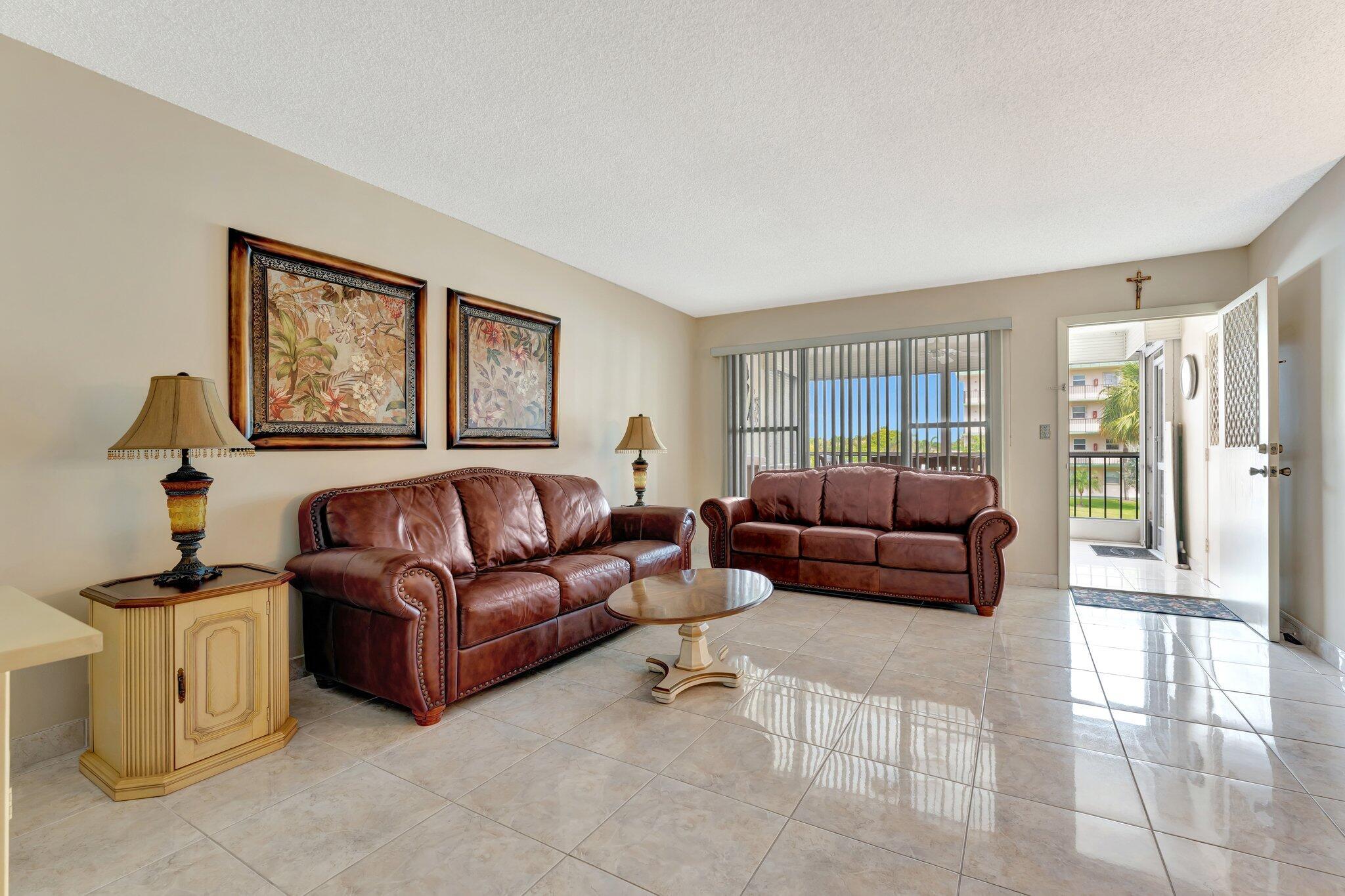 This Vibrant 55+ Community is a Perfect New Home or Winter Getaway! It Features an Enclosed Porch Ready for Entertaining Family or Friends. This Rarely Available, Large, Corner Two-Bedroom, Two-Bathroom Condo is Designed for Comfortable and Spacious Living with a Living Dining Combo and a Galley Kitchen with Wood Cabinets & Granite Counters. The Unit is Offered Fully Furnished and has IMPACT Windows. The Community Boasts Two Pools and a Clubhouse, Ideal for Socializing and Relaxation. Great Location Close to Beaches, Shops and Restaurants!
