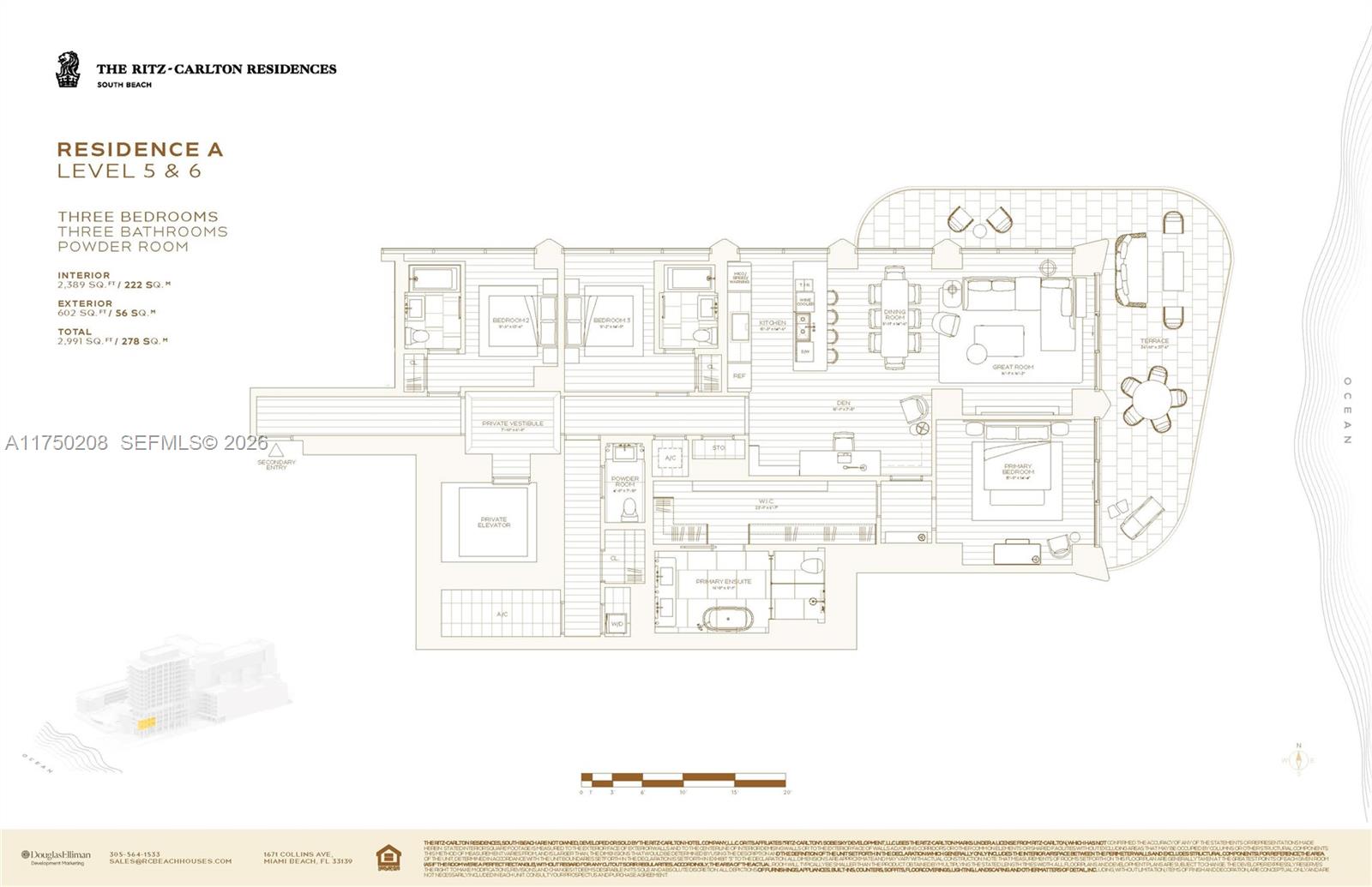 Discover the pinnacle of refined living with FULL OCEAN VIEWS at The Ritz-Carlton Residences, South Beach, an exclusive enclave of 30 oceanfront beach houses. Crafted by renowned architect Kobi Karp and featuring exquisite interiors designed by Studio Munge’s Alessandro Munge, this boutique property offers over 50,000 square feet of world-class amenities. Immerse yourself in beautifully landscaped surroundings by Naturalficial and indulge in exceptional dining curated by Michelin-starred Chef José Andrés. This stunning 3-bedroom, 3.5-bathroom residence encompasses 2,991 square feet, including a spacious 602-square-foot terrace, and features a private elevator, a luxurious primary suite, and expansive living areas designed for ultimate comfort and style.
