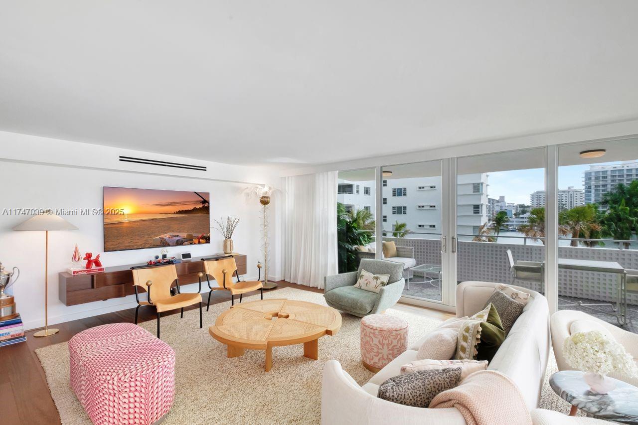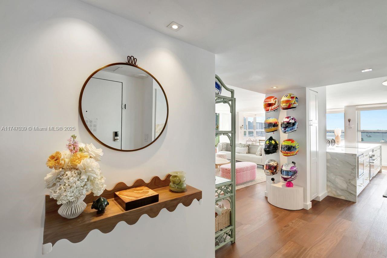 Feel like you’re sailing away from this sunny, large corner unit with breathtaking views of the bay, marina, and cruise ships. This sought-after 02 line offers water views from every room. Exquisite-Professionally Designed in 2021 with top-quality materials, including an Allied Kitchen with Calacatta Gold marble from Opustone, featuring a waterfall countertop and matching backsplash. Bathrooms are equally luxurious with Waterworks faucets, Brazilian oak wood floors, new impact windows, electric shades, and a brand-new A/C. The building offers: valet, 24/7 front desk, gym, EV charging stations, floating dock for kayaking and paddleboarding, BBQ area, and more. Prime location across from The Standard Hotel and steps from Lincoln Road, top restaurants, the beach, and more.