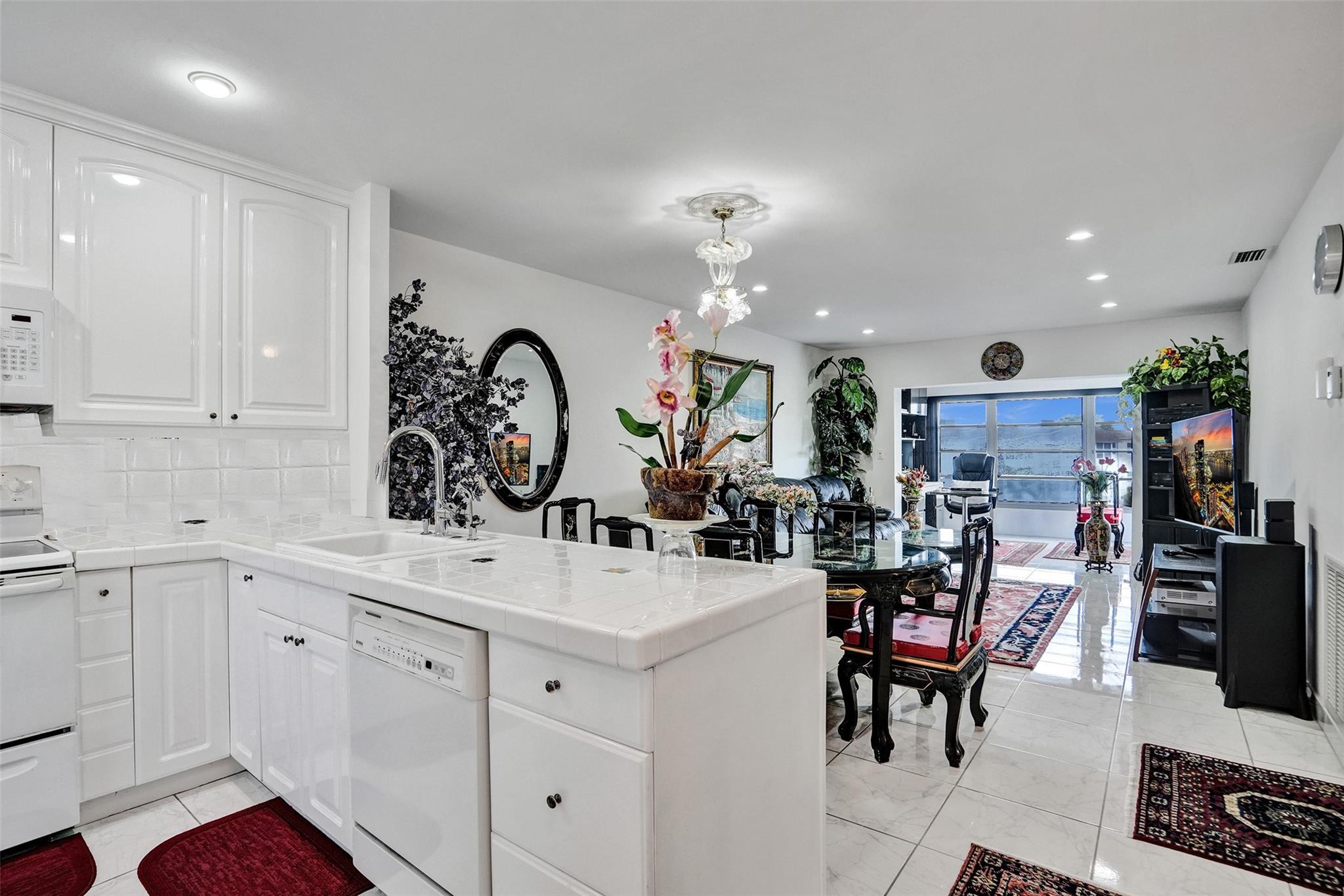 Welcome to your beautiful 2-bedroom, 2-bathroom top-floor apartment in Seagrape Phase 7 of Hawaiian Gardens! This bright and airy condo offers stunning views of the lake and clubhouse. Enjoy a modern white kitchen with upgraded cabinets and tile flooring, along with custom cabinetry throughout. The updated bathrooms add a touch of luxury, and the fully enclosed glass balcony provides a perfect space to relax and take in the scenery. This unit comes fully furnished—just bring your toothbrush and settle right in! Don't miss this opportunity to live in a serene and picturesque setting.
