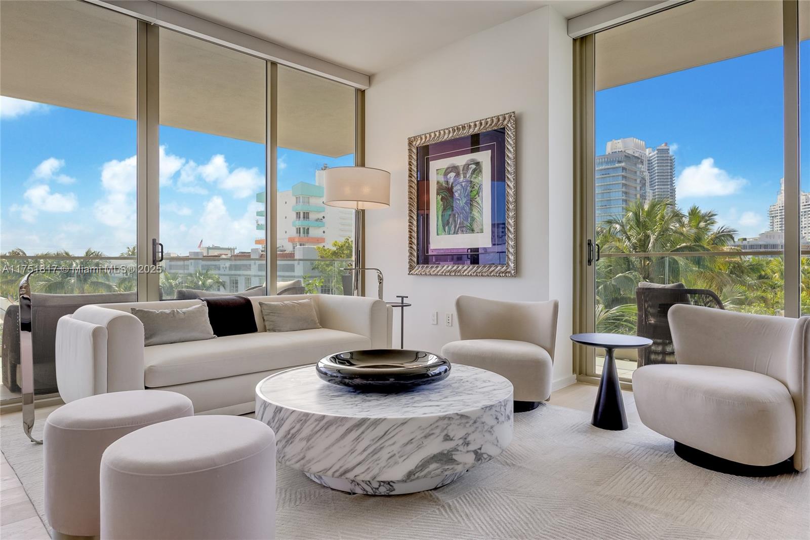 Experience luxury living at 300 Collins in South of Fifth. This southeast corner unit features floor-to-ceiling windows and a 10’ deep wrap-around terrace for seamless indoor-outdoor living. Designed by Thomas Juul-Hansen, it boasts white oak floors, a custom kitchen with matte lacquer cabinetry, glass countertops, and a Miele appliance package with gas cooking. Spa-like baths feature Italian natural stone finishes. Premium upgrades include motorized shades, a built-in entertainment console, and custom closet systems by Onare. Enjoy South of Fifth’s largest rooftop pool (75’), a Jacuzzi, fitness studio, and a 24-hour front desk. With only 19 residences, 300 Collins offers a rare blend of privacy, sophistication, and top-tier luxury in one of Miami’s most coveted neighborhoods.