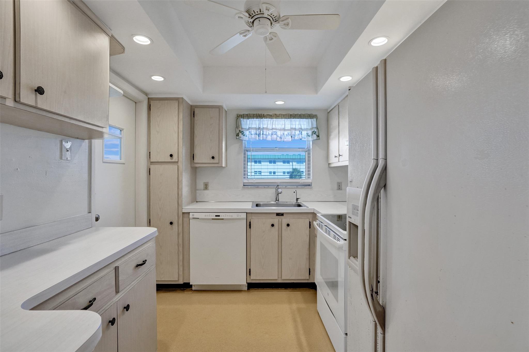 This 55+ 2/2 has a great view from this 3rd floor unit of the beautiful grounds, pool and clubhouse. Some updates have been completed and ready for your personal touch. The complex has had it's 50 year inspection, Sir and reserve study completed. Concrete restoration, painting and 3 roofs completed approx 3 years ago. Special Assessments have been paid by seller. THIS UNIT COMES WITH COVERED PARKING. Building now has full reserves in the budget. Close to shops, restaurants, and major hwys. No dogs allowed only service or esa with proper paperwork. Rent restrictions of 5% of the units, must own 2 years and now has a waiting list.