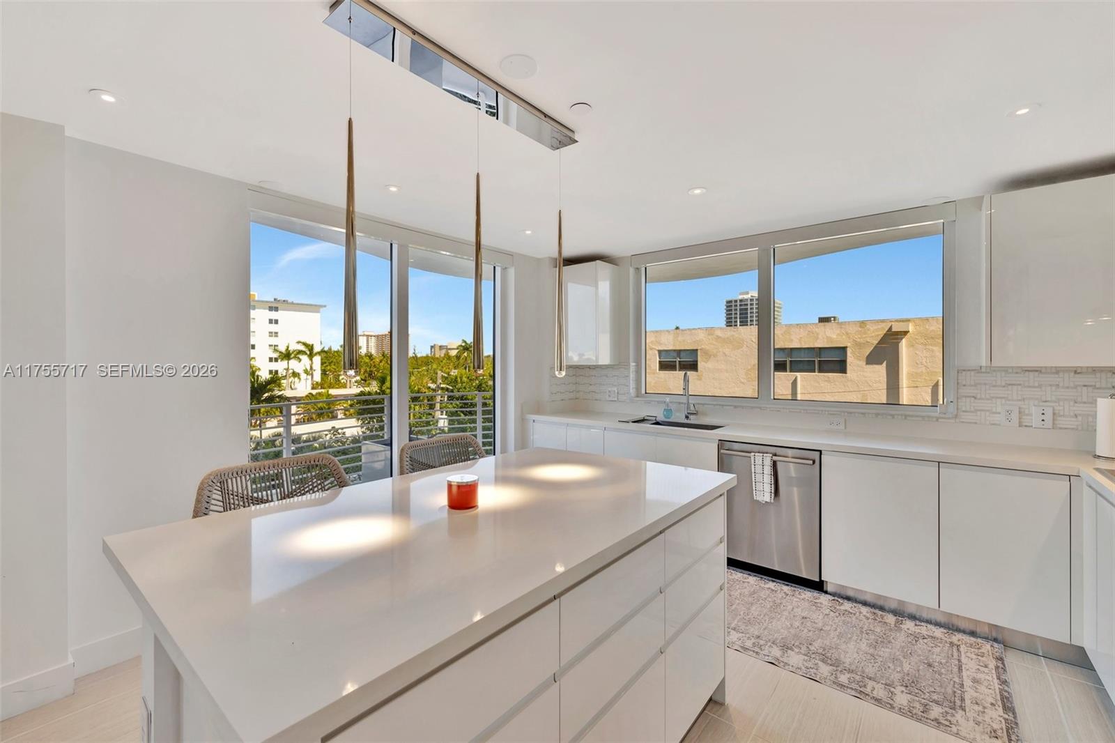 Spectacular half-floor 2BR + den residence in the heart of the famous Ft Lauderdale Beach, three blocks from the sand. Nearly 2,400 sqft of indoor/outdoor living - dramatic 180° wraparound terrace, direct access from every room. Floor-to-ceiling impact glass fills the home w/ natural light and stunning Downtown Las Olas skyline & sunset views. Exclusive boutique building - only 17 residences (two per floor). European kitchen, SS appliances, electric blinds, custom closets + designer lighting. Primary suite includes a spacious walk-in closet & ensuite bath w/ glass-enclosed shower and double vanities . Heated pool, fitness center, BBQ grill, outdoor dining & lounge area. Prime Central Beach location near Las Olas Blvd, Four Seasons, Ritz-Carlton & Hugh Taylor State Park. Virtual tour video