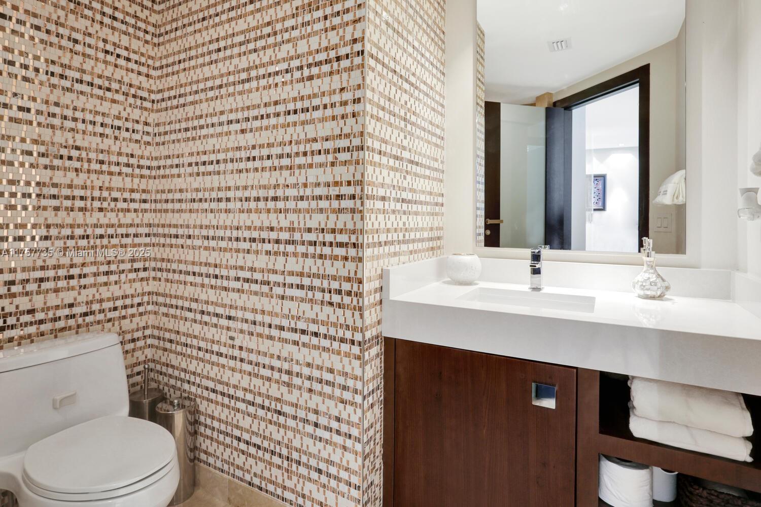 Step out of the elevator into your private foyer and enter this custom-designed, East-to-West flow - 3 bedroom, 3 bath 2,130 sq ft residence w/ panoramic, unobstructed views of the ocean, bay & skyline. Open floor plan. Gourmet kitchen offers top-of-the-line Miele, Sub-Zero appliances & dual wine fridges. Primary suite features 2 walk-in closets, spa-style bathroom w/dual vanities, soaking tub & separate walk-in shower. Enjoy indoor-outdoor living w/direct access from every room to the oversized terraces. Elegant marble flooring, floor-to-ceiling windows, remote-controlled window shades, custom lighting, designer doors. Assigned parking space. Jade Brickell amenities: 24-hour concierge, valet, two resort style pools, fitness center, spa, club room & more !