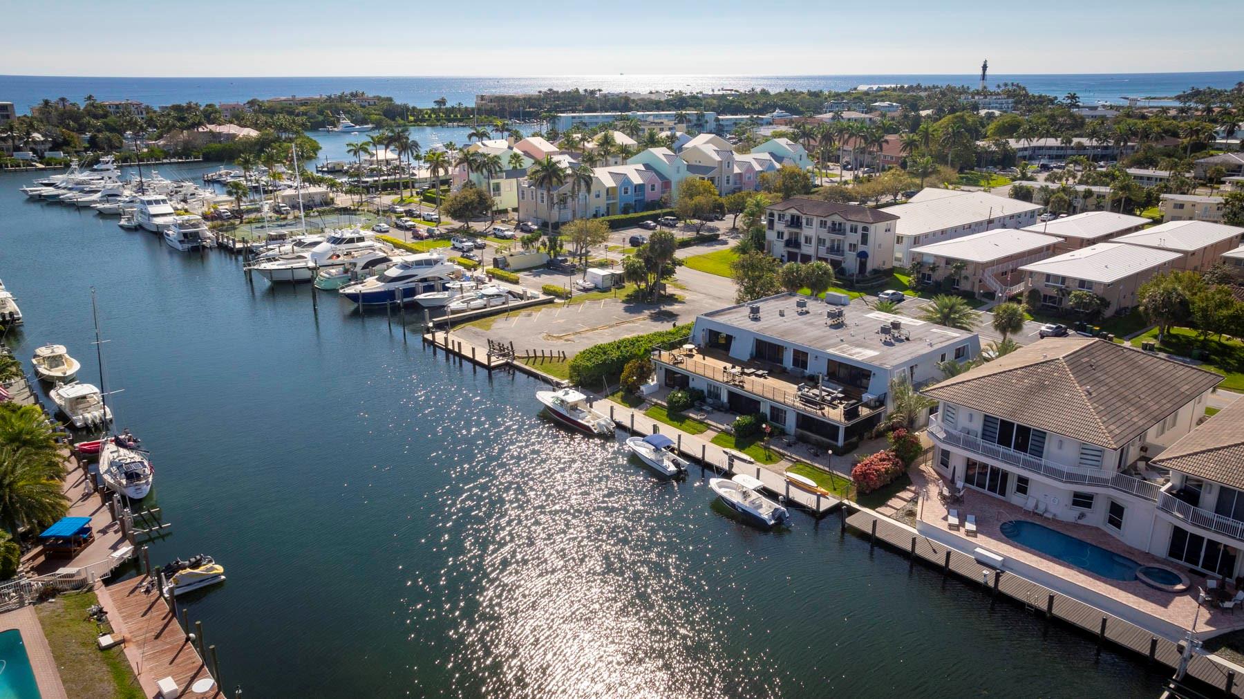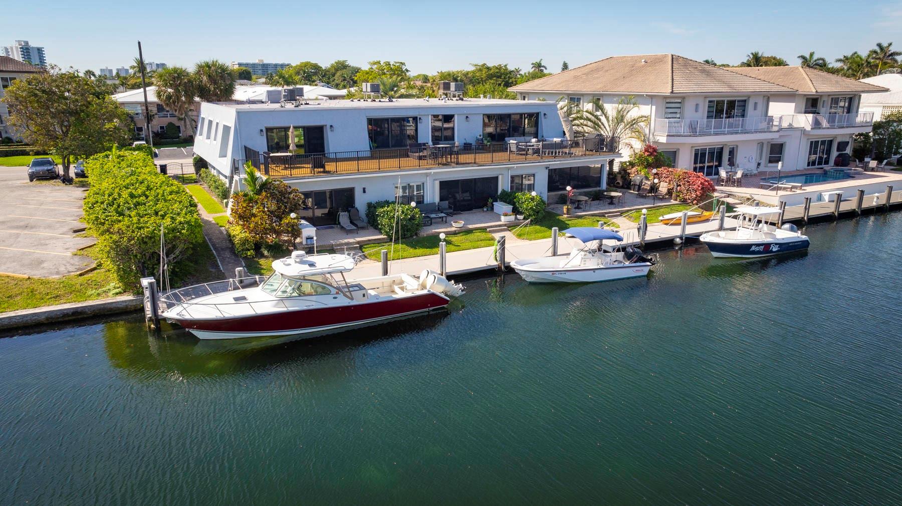 This is an unusual opportunity to own a 3-bedroom 2.5 bath ground floor unit remodeled in the Marina area of Lighthouse Point on the widest canal in the city, so close to the Hillsboro inlet, there is dock space when available on the property. The Unit was decorated by a designer in the last few years. Some of the features in this warm inviting home are stainless steel appliances, beautiful granite counter tops, decorative electric fireplace, full size washer and dryer and an amazing gourmet kitchen and butler bar pantry. Enjoy the use of a beautiful, screened Patio with T and G ceiling overlooking the beautiful wide water views. Launch your Kayak or Paddle Board from the dock and be in the Atlantic Ocean in 10 minutes (literally). Wired for Generator. You must see this gorgeous unit!