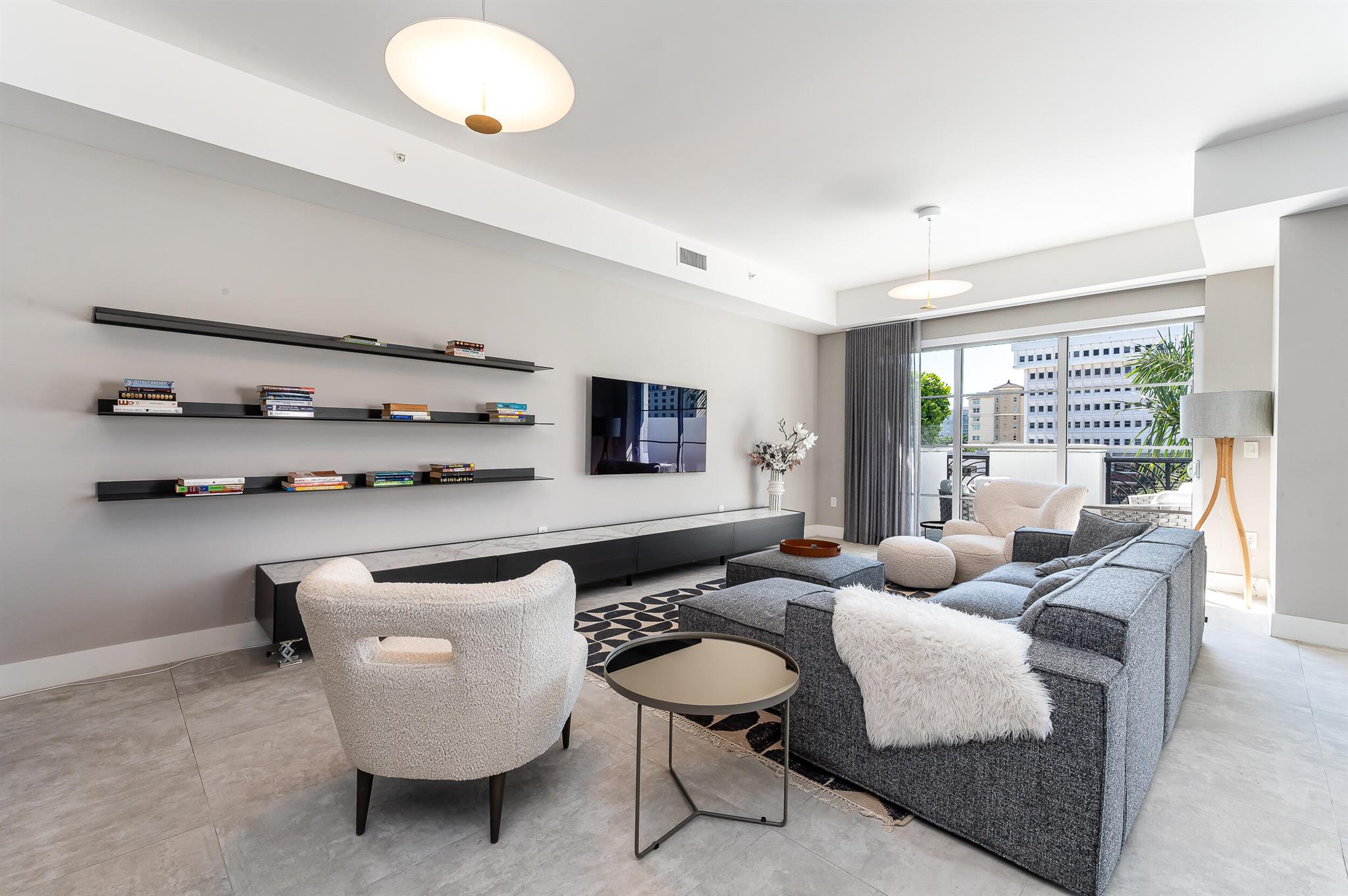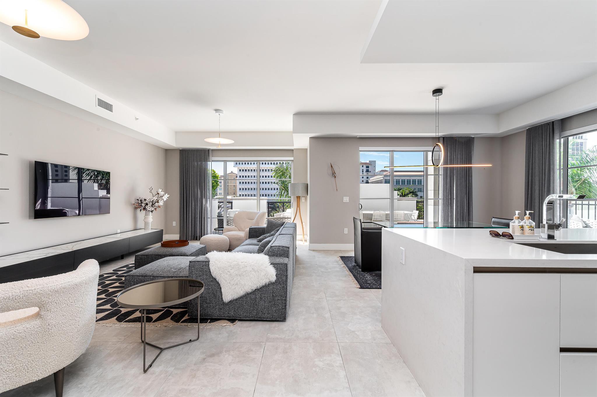 The most impressive indoor/outdoor living experience in Downtown Boca Raton. This spacious and highly upgraded furnished 2 bedroom unit with a den/media room provides the ultimate living experience. Enjoy great natural light in this open concept South facing home with 10 foot ceiling heights. The upgraded kitchen features Italian cabinetry with induction cooktop and steam oven. The primary bedroom has an abundance of storage with spa like bathroom with separate soaking tub and shower. The main living area great room provides designer-ready built-ins, beautiful dining area perfect for entertaining. Additional upgrades include motorized shades, custom built-out closet, large laundry room, 2 assigned parking spaces and 2 additional storage units. All this just 1 block from Mizner Park!