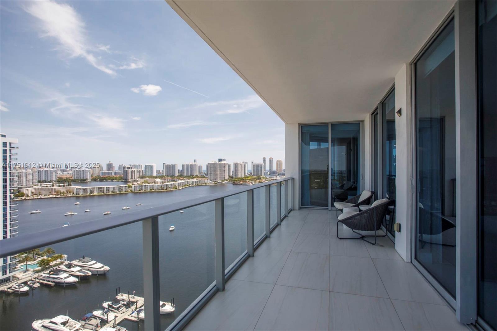 Large 2 Bedroom 2.5 bath + glass enclosed DEN residence at the remarkable MARINA PALMS RESIDENCE AND MARINA in North Miami. Surrounded by water views, amazing sunsets and skyline lights, Residence 2101 was remarkably finished by Steven G, with high quality wall coverage and finishes, Design light package and built in closets. High end appliances with SubZero refrigerator and wine cooler. This is a truly lifestyle experience with a resort living feeling, from Private Marina for large boats, boat club and water sports, to water front Pool, Spa, State of the art Gym, recreation and Media Room, to Valet Parking & Concierge, too much to mention. Located in the center of all, close to Aventura Mall, Sunny Isles Beaches and easy access to main Highways