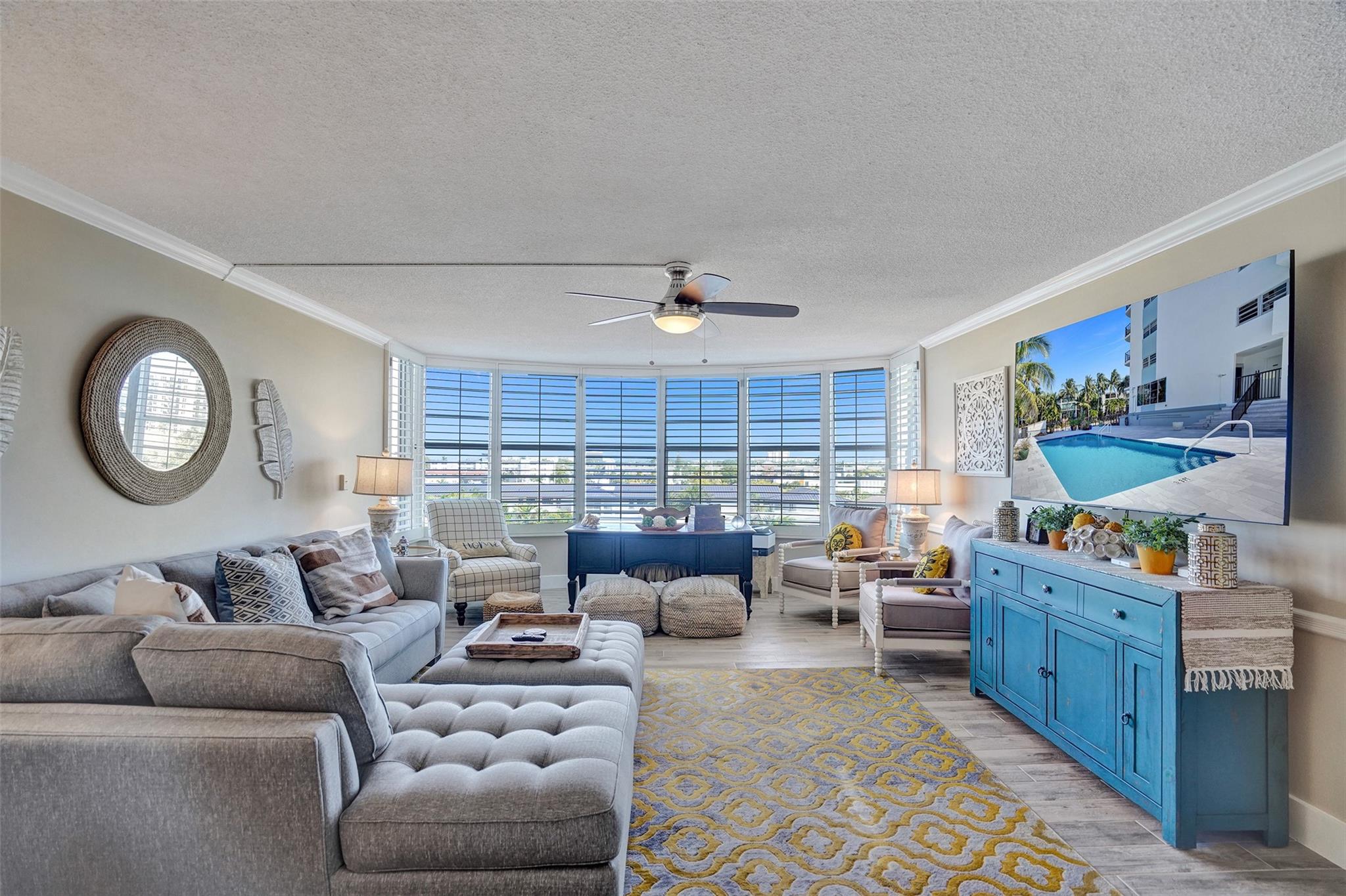 Stunning, luxurious waterfront living in this 2BR/2BA condo with 1450 SF of modern space. This turn-key unit features a renovated kitchen with granite countertops, stainless steel appliances, and custom cabinetry. New elegant plank ceramic floors, new hurricane compliant windows/doors, plantation shutters, and newly painted! Spacious master and second bedroom feature large walk in closets. Washer/dryer in unit! One parking space in the covered garage. The secure building finished its concrete restoration and almost everything is new, including modernized elevators, new dock, new roof, seawall updates, and a heated pool that gets sun-all day. Pet-friendly and just steps from top dining, shopping, nightlife, and minutes from Lauderdale- by-the-Sea Beach. Low HOA’s. Parking space 41