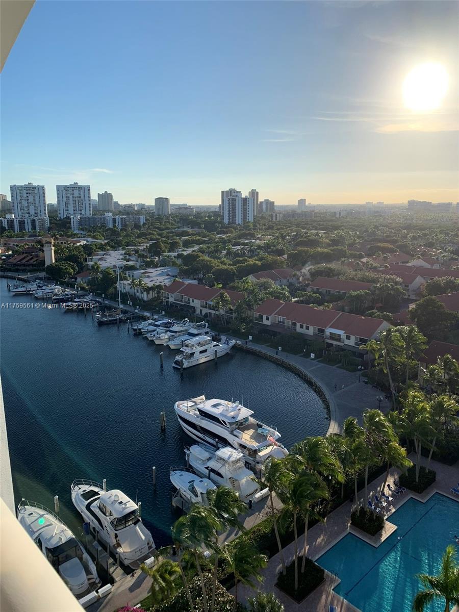 Experience breathtaking views from this stunning 15th-floor penthouse in Portsview at the Waterways—one of the best locations in Aventura! This beautifully designed 2-bedroom, 2-bathrooms with a balcony overlooking the water. This unit is the EPITOME of waterfront luxury with countless upgrades that you MUST see for yourself! Enjoy resort-style living in this gated community with exceptional amenities, including two pools, a fitness center, tennis courts, a stylish party room, and scenic walking paths surrounded by lush greenery. Conveniently located within walking distance to Houses of Worship, Don Soffer High School, Waterways Park & Marina, Whole Foods, and Aventura Mall.