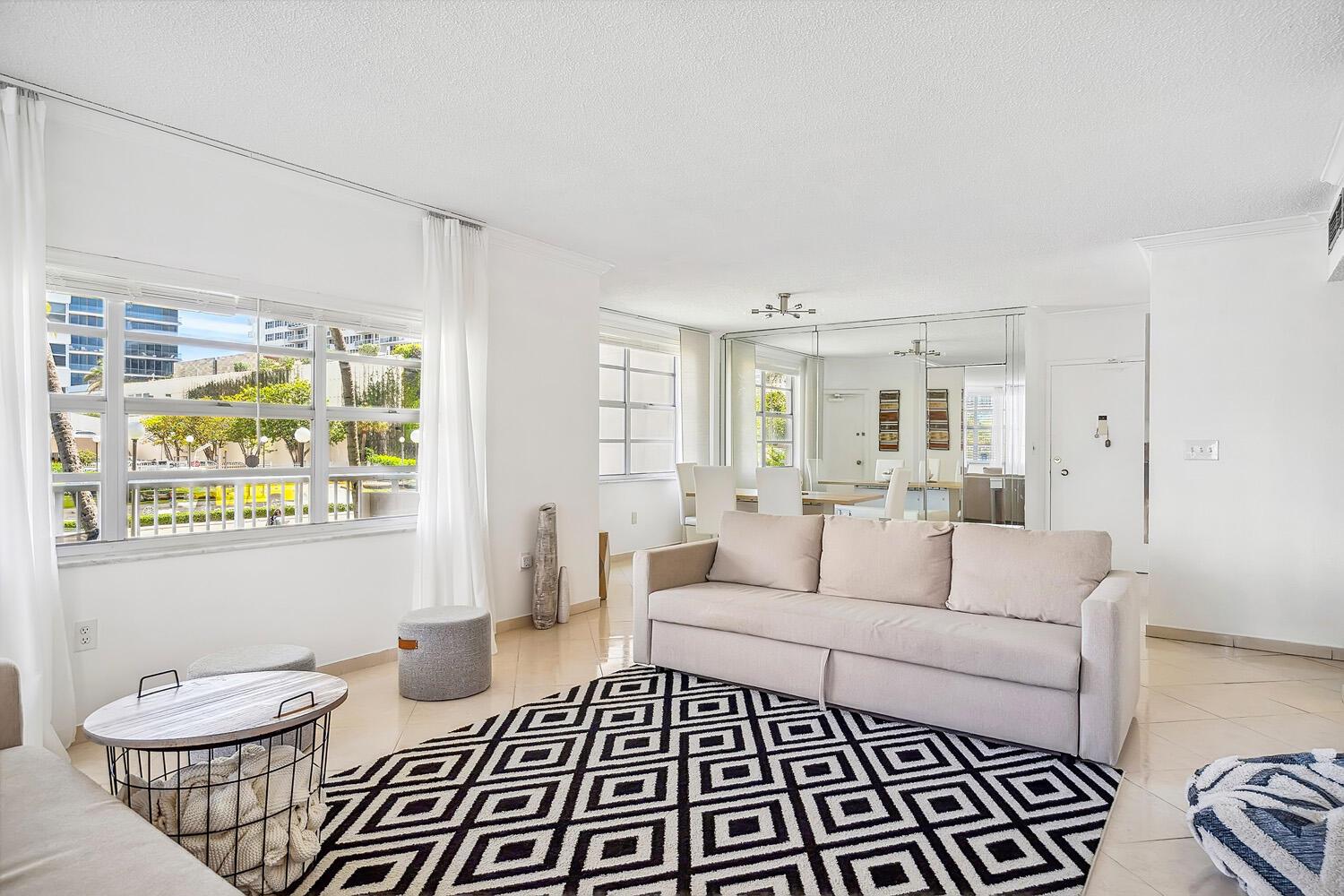Resort-Style Living at The Hemispheres South Condo. Experience the ultimate in beachfront living with this rare 1,380 sq. ft. corner unit on the 1st floor of an oceanfront high-rise in the heart of Hallandale Beach. This unit is located 1 floor below lobby, and 1 floor above ground, as you can see in the photos. This spacious 2-bedroom, 2-bathroom residence boasts the largest floor plan in the building, offering abundant natural light and a serene coastal ambiance. Property Highlights: Prime East-Facing Exposure - Enjoy sun-filled mornings and an exceptionally quiet beach area, thanks to the community's exclusive location adjacent to Golden Beach. Parking space # 849, right next to the apartment. Storage on the same floor.