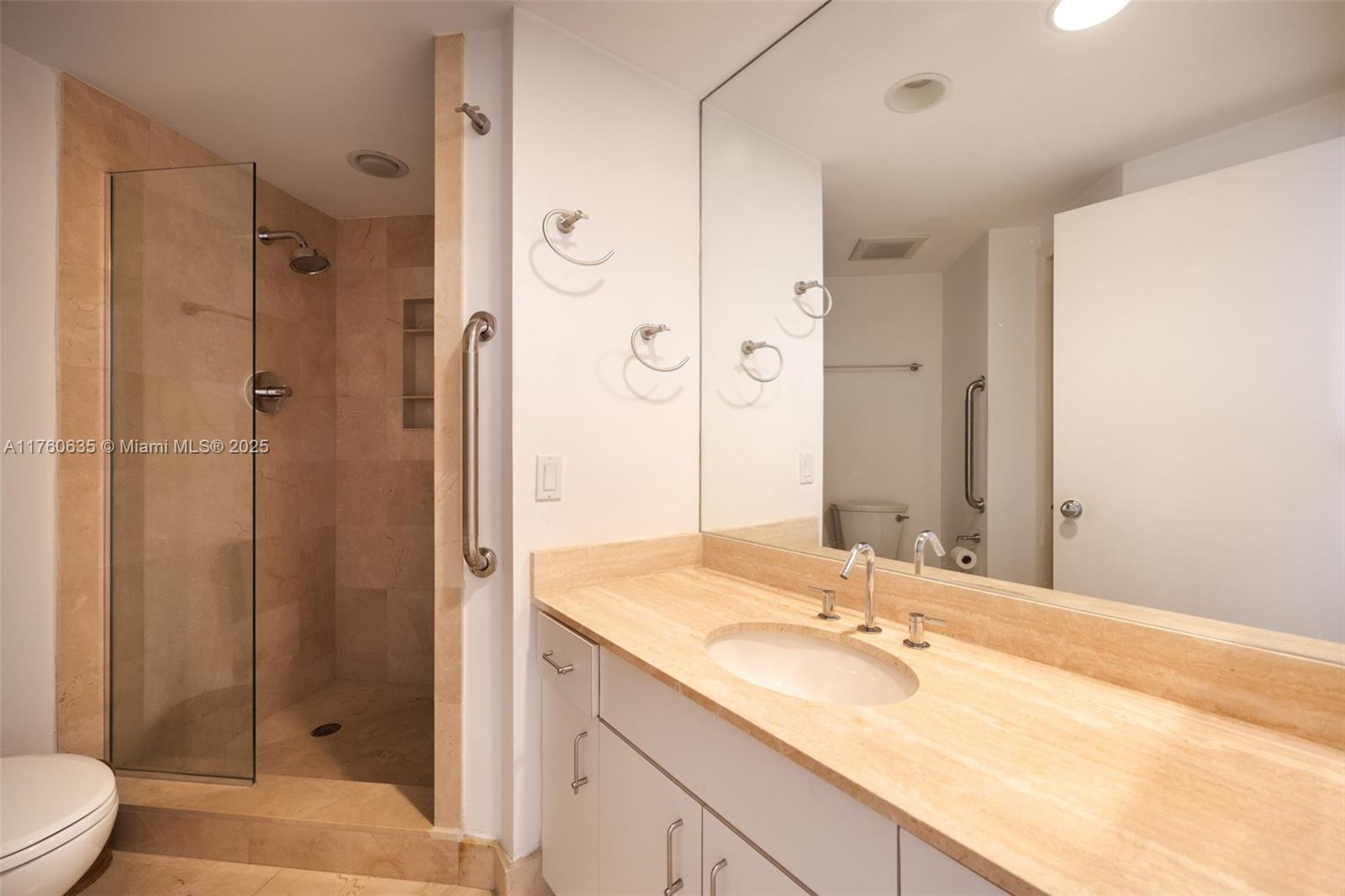 Enjoy beautiful Biscayne Bay views from this warm and welcoming 2 Bed / 2 Bath, with split floor plan. Living room and second bedroom open onto bright, spacious balcony. Primary bedroom features double en-suite bathrooms and additional, private balcony. Take advantage of all that elegant Villa Regina has to offer, including complimentary valet for guests, large bay-view pool, outdoor hot tub, barbeque, private marina, state-of-the-art gym with steam and dry heat spas, multiple party rooms, and children's playroom. One assigned, covered parking space. Completed 40-year recertification No special assessments. Situated in the tree-lined residential section of Brickell, within walking distance to shops and restaurants of Mary Brickell Village and Brickell City Center.