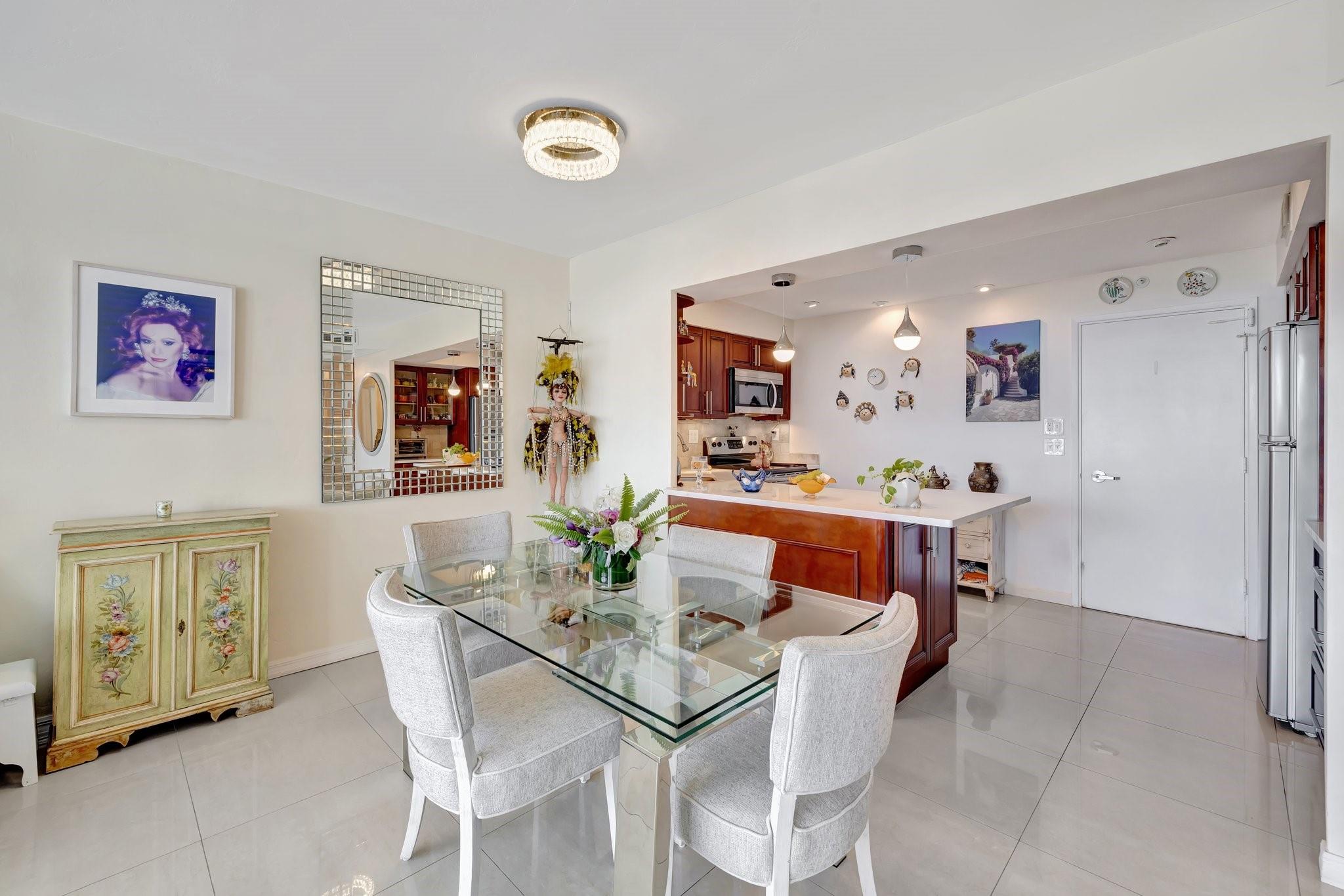 GORGEOUS - DIRECT OCEAN VIEW - CHEF'S KITCHEN - BUILDING IS STRUCTURALLY AND FINANCIALLY SECURE. Designer interior hallways grace the entrance to this beautifully curated residence. The open kitchen features quartz countertops, soft close cabinetry and a breakfast bar, perfect for entertaining. Light porcelain tiles throughout create a modern tranquil balance. Bathroom boasts a walk-in shower and upgraded vanity. Tons of closet space enhance this HUGE one bedroom. Building owns the land - no land lease. 55+ community on 5+ acres with full amenities. Massive heated pool, bocce ball, fitness center, extra storage, social activities, Intracoastal Clubhouse, on site management, concierge desk, 24/7 security. Close to everything! Entertainment, shopping, golf, boating, restaurants. Cash only