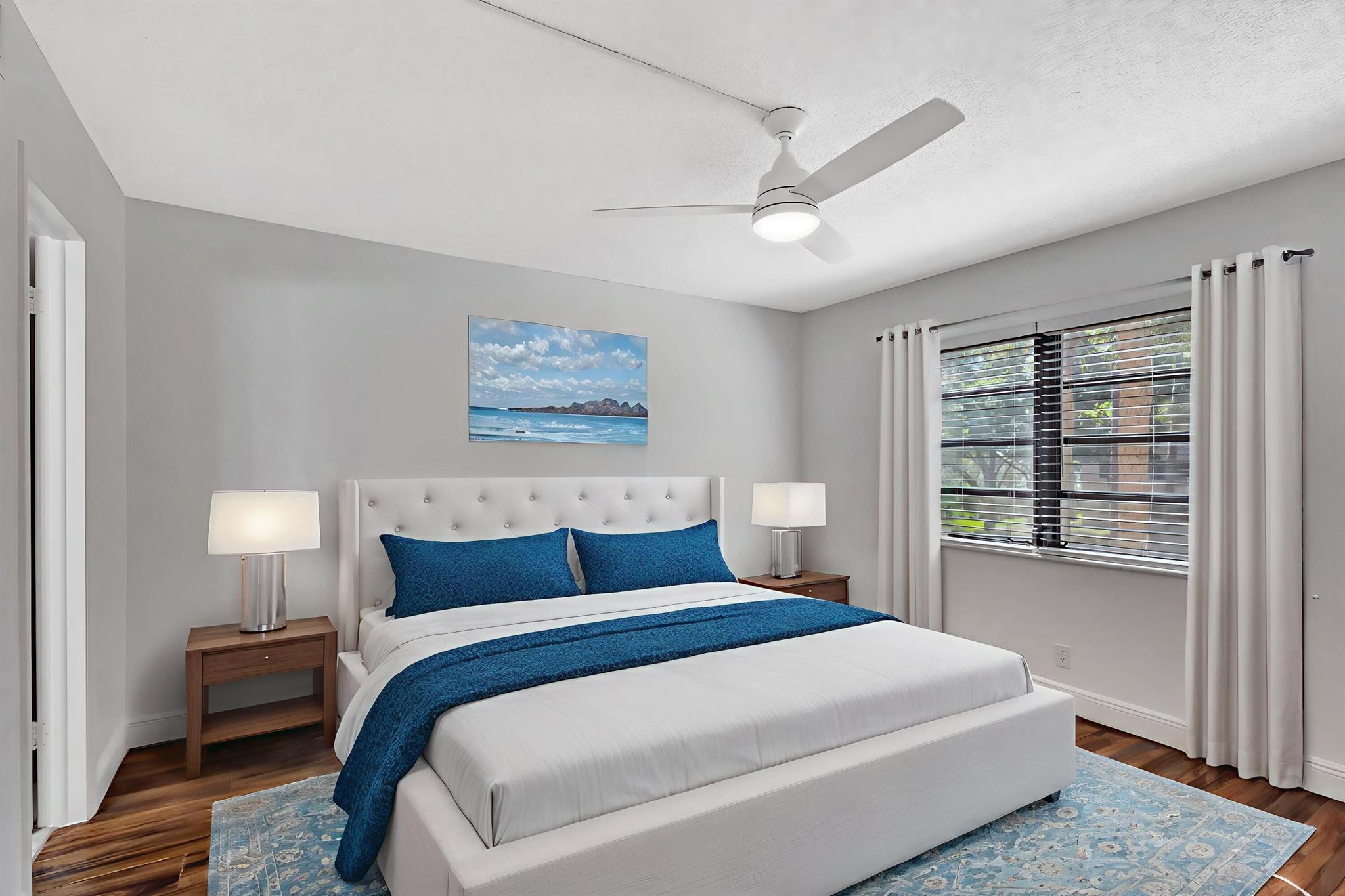 Incredible value! This beautifully remodeled 2BR, 2BA condo (55+ Community) offers a stylish living space with freshly painted walls, a brand-new dishwasher, laminate wood floors, stainless steel appliances, white shaker wood cabinets, exquisite granite countertops, and updated vanities in both bathrooms--In unit washer/dryer is permitted upon submission and approval by the (ARB). With modern finishes and an inviting layout, this home is perfect for relaxation and entertaining. Located in a resort-style community, you'll have access to a terrific clubhouse, making every day feel like a getaway.Conveniently located, this home is just minutes from the movie theater, shopping, dining, the Turnpike, and PBI Airport, with the ocean only 20 minutes away. Don't miss this incredible opportunity!