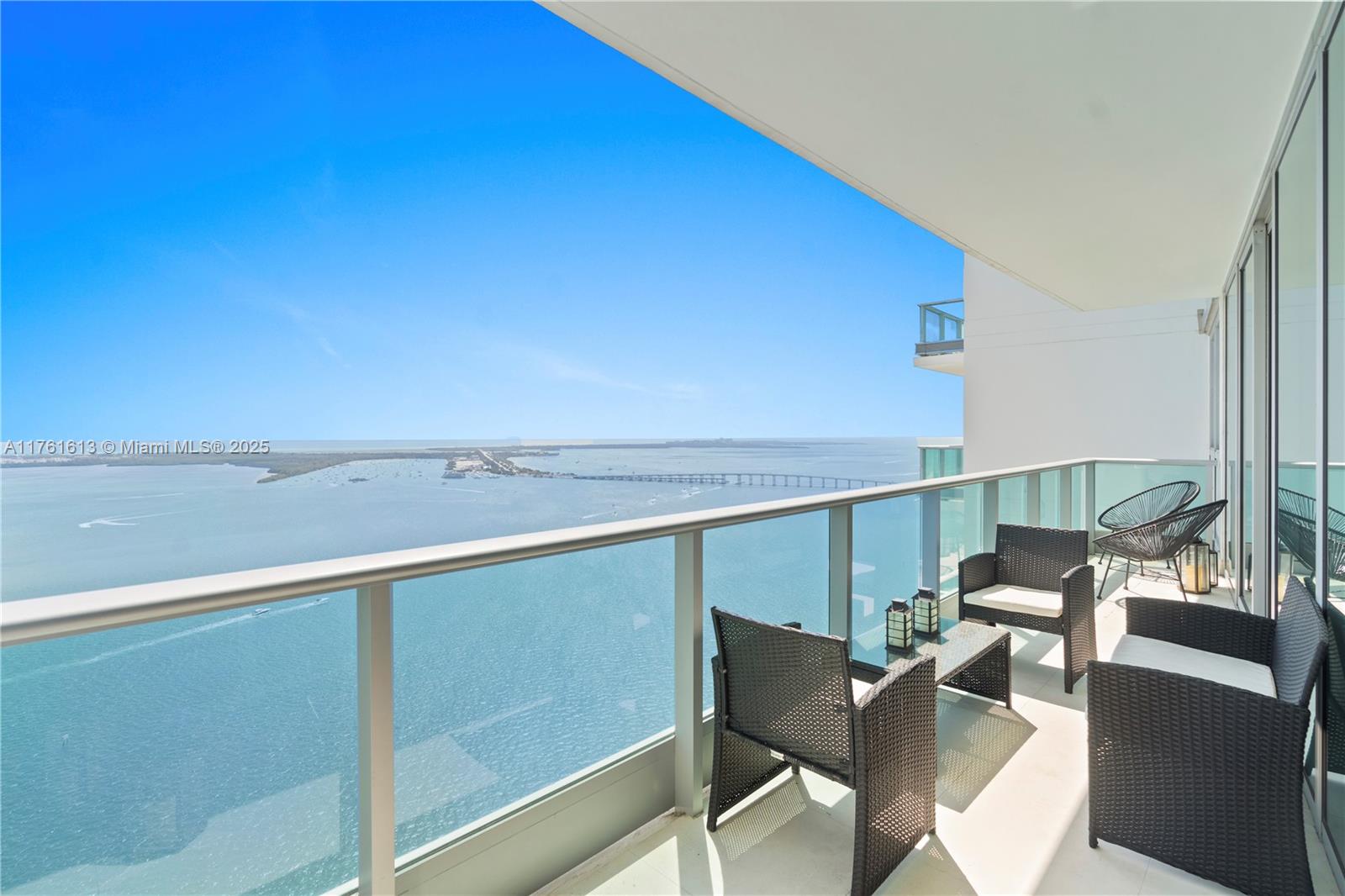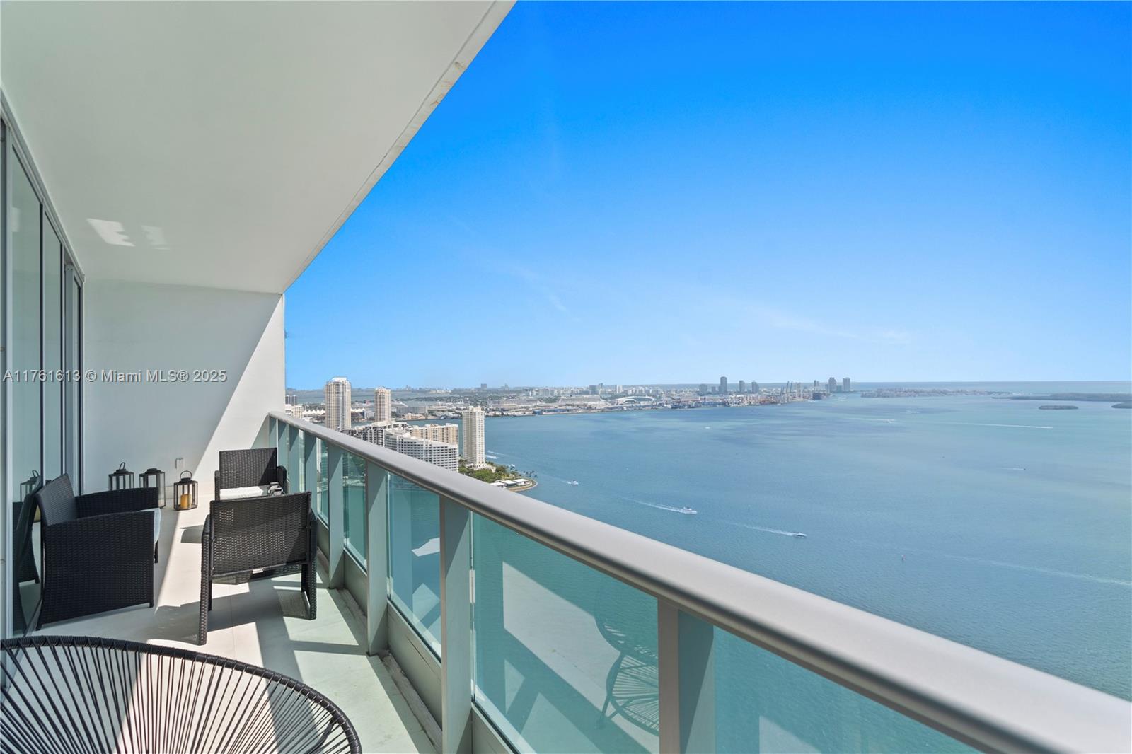 The Jade Brickell unit 4409 offers forever unobstructed views of Biscayne Bay, the Miami Beach skyline, and all of Key Biscayne. 2 bedrooms + office/den, 3 ba. Private elevator entrance. Kitchen has been updated with white abalone granite counter tops with all white cabinets. Sub-Zero refrigerator, in unit washer/dryer. Located on Brickell Bay Drive, it offers excellent walkability to restaurants and shopping, while also providing easy access to I-95. The elevator leads directly into the unit's private foyer. Located in the heart of Brickell, with 5-star amenities that include racquetball courts, a state-of-the-art fitness center, an infinity-edge pool, a spa, a rooftop community room, a security system, a business center, full-service concierge, and 24-hour valet parking.
