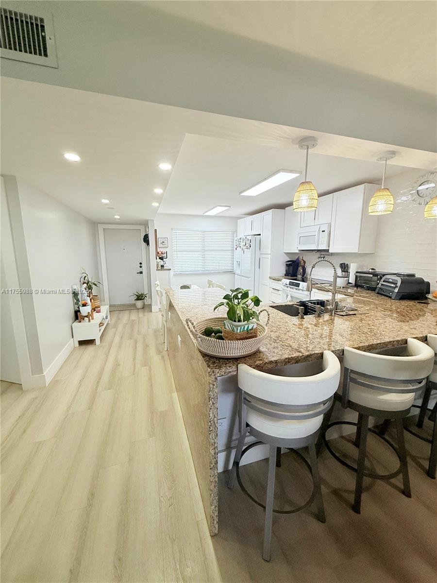 All new... FULLY RENOVATED, 2BR/2BA. NEW IMPACT GLASS WINDOWS, NO POPCORN CEILING. NO POLY PIPES NEW ELECTRIC TANKLESS, NEW DOORS, new baseboards, and hardware. The designer open kitchen features extensive cabinets, NEW APPLIANCES, granite countertops, and a full tile backsplash. New elevator 2024, and new Roof 2025 waterproof VINYL throughout. , new AC condenser. Large laundry room w/ lots of storage & full-size washer/dryer. —guest bathroom with shower and porcelain tile.. Enjoy a tranquil golf view. Amenities include 24/7 security, heated pool, movies, restaurants, shuttle service, fitness center, golf, tennis. MOST SPECIAL! Experience luxurious living at its finest!. motivated Seller ..