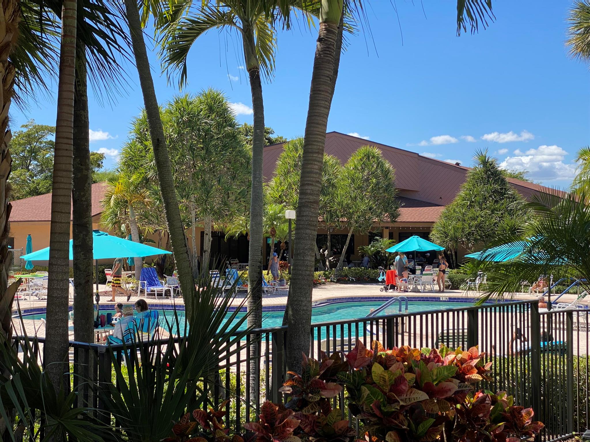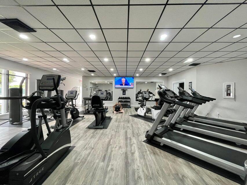 DELRAY RACQUET CLUB. Sharp looking 2nd floor 1175 square foot 2 bedroom - 2 bath modern retreat. ALL AGES WELCOME. 80 inch x 8 inch Pergo laminate plank flooring throughout except for tiled bathrooms, upscale open kitchen with elegant quartz countertops including 7 foot long breakfast bar; recently painted interior, separate laundry room with s/s washer & dryer, 70 square foot patio/terrace accessed through 8 foot tall sliding glass doors, 5 1/2'' tall baseboards throughout, crown molding in living room & dining area. Monthly fee includes water, cable, in-unit WIFI, usage of 2 pools, whirlpool, well-equipped fitness room and reserves. Non-aggressive pets up to 25 lbs are welcome. Investor friendly- no waiting period to lease- can be leased for a one month minimum up to 6 times per year.