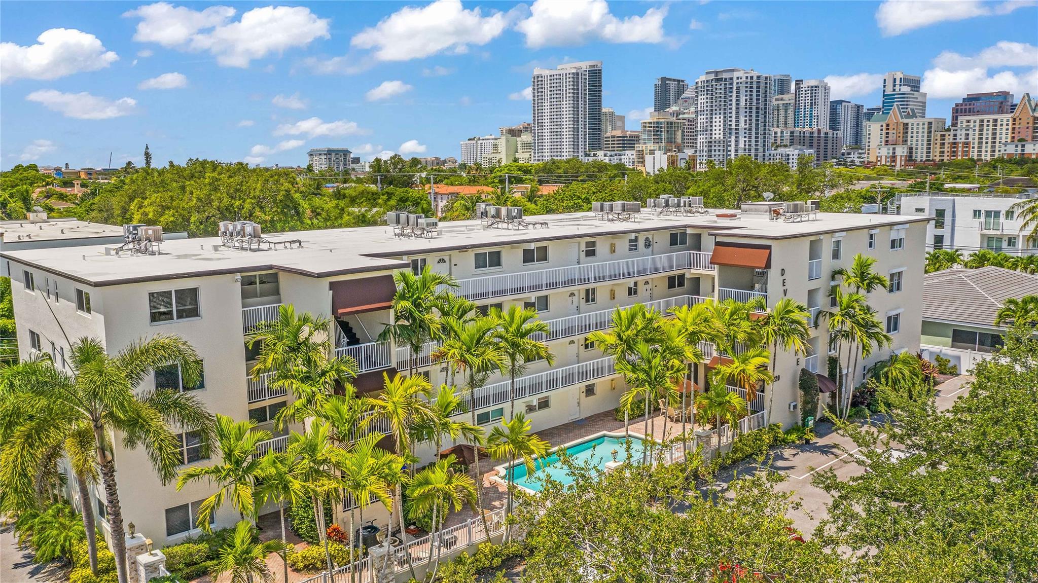 This Victoria Park's Building is approved for Fannie Mae & Freddie Mac financing w/ as little as 5% down. Welcome to a slice of paradise at the Devonshire, where modern luxury meets the vibrant energy of Las Olas, Ft. Lauderdale! This meticulously maintained 2BR|2BA condo offers an open floor plan filled with natural light, showcases a palette of crisp whites & contemporary grays. Elegant new crown molding, baseboards & porcelain tile flooring throughout creates a continuous, luxurious feel. Recent updates incl. high-efficiency 16seer A/C, electrical panel, Nest thermostat, and Ring doorbell. The building has recently undergone renovations, incl. a new roof (2021), modernized elevator(2015) & resurfaced heated pool(2024). Additional perks; Samsung smart TV & a pre-wired Bose with speakers.