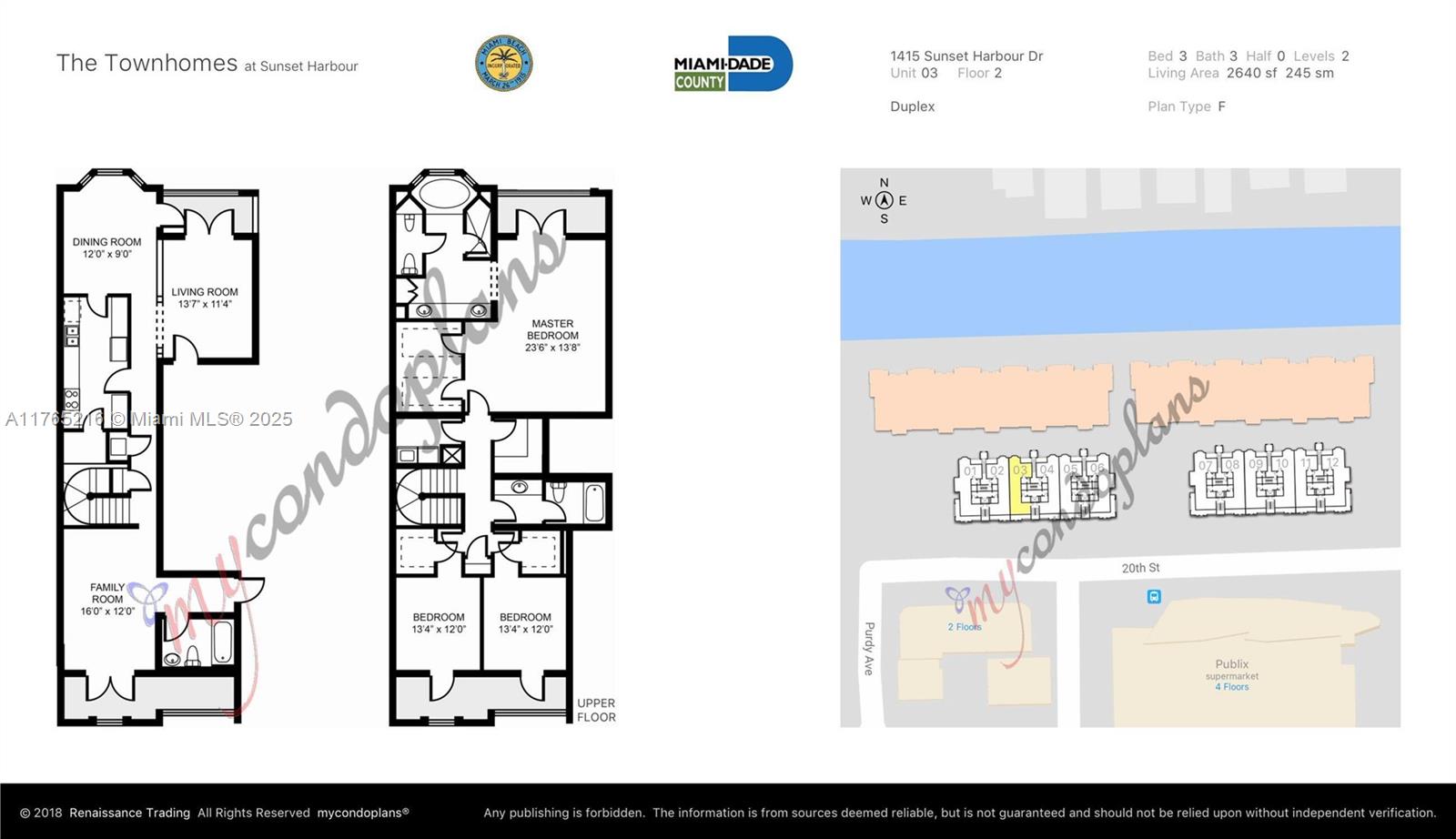 Sunset Harbour Townhouse 3 bedroom Condo For Sale