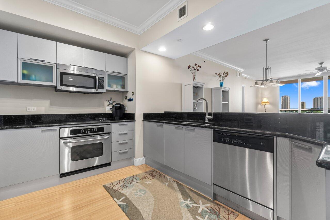 BEST VALUE/PRICED TO SELL TRUE 3/3 in Desirable Ocean Tower - Immaculate 7th floor 3/3 unit with stunning waterfront Intracoastal & ocean views! Featuring genuine bamboo floors in pristine condition! ALL impact glass! Semi-private elevator access, open concept, split floor plan. Spacious owner's suite w/his & her walk-in closets. Primary bath w/double vanity, jetted bath & water closet. New A/C (2022) & stainless steel appliances in the open kitchen. Assigned garage parking & climate-controlled storage unit. 24/7 manned gate, valet, NEW tennis, NEW pickleball & bocce, walking path w/gazebo, newly renovated rooftop oasis w/pool, spa, BBQ areas, clubhouse, billiard room & fitness center. Marina w/dry docks available. Pet Friendly Community. Ready to move right in & enjoy the amazing view!
