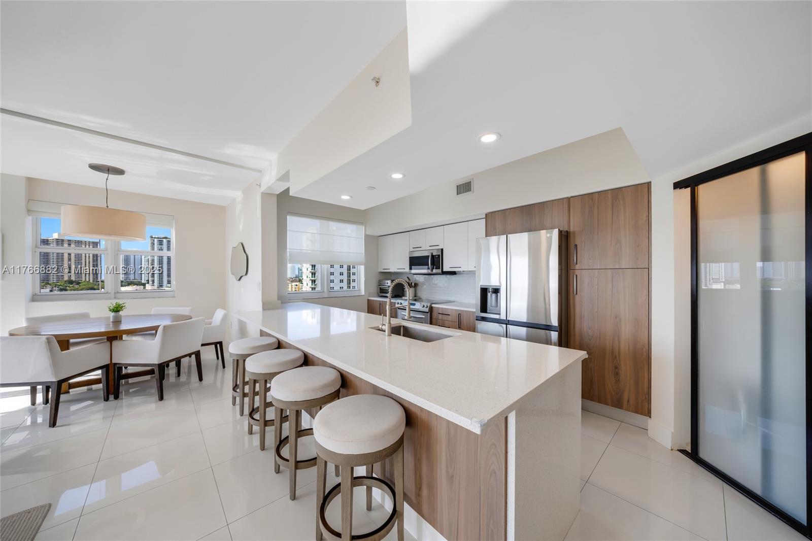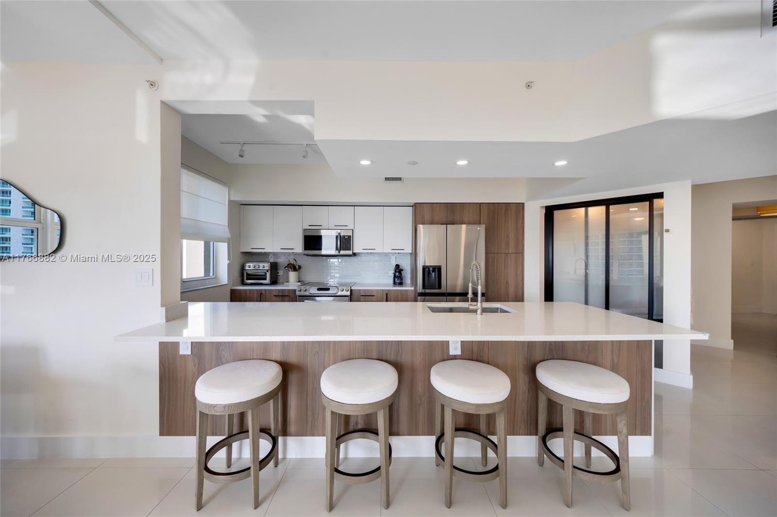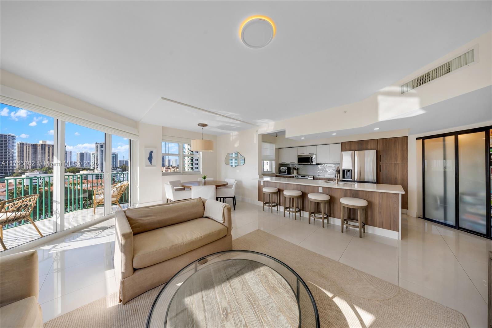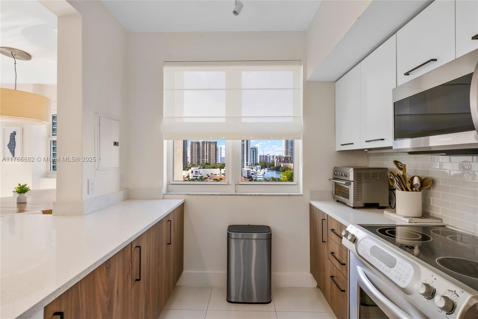 Wake up to breathtaking sunrises in this bright and spacious 3-bed, 3-bath corner condo located in the prestigious Turnberry Village. Offering 1,681 square feet of comfortable living space, this east-facing unit features tile flooring throughout, an open kitchen with updated sleek cabinets, quartz countertop, a newer refrigerator and microwave and custom closets throughout. Turnberry Village provides 24-hour manned guard gate, valet, and upscale amenities including an infinity-edge pool, spa, state-of-the-art fitness center, elegant party lounge, and billiard room. Unit comes with two covered parking spaces and private storage. There is even a house of worship on the premises. Property is conveniently located just minutes from the Aventura mall, fine dining and the beaches.