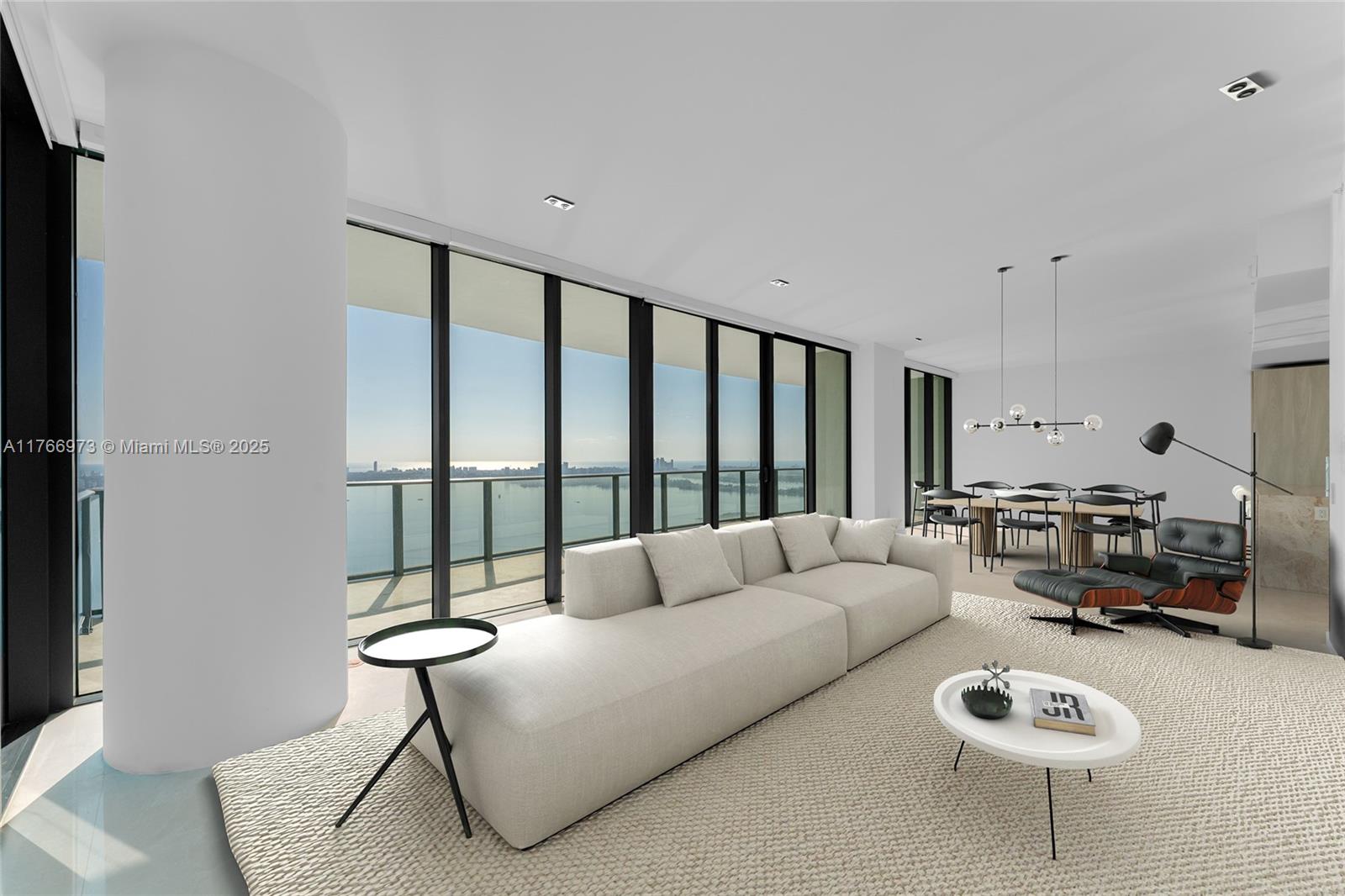 Experience luxury living in this stunning corner penthouse at One Paraiso, in Edgewater. This spacious 5BR,/5.5BA unit, offers 2,887SF of refined living space & private elevator entry. Gres Porcellanato floors throughout, dual terraces w/breathtaking sunrise & sunset views in all directions—North, South, East & West. Open living room extends from the dining area, featuring floor-to-ceiling windows/doors that open to an expansive terrace with direct bay & ocean views. A Chef’s kitchen boasts a marble island, custom cabinetry & top-tier appliances. Primary suite offers direct terrace access, dual walk-in closets, & spa-style bathroom - oversized rain shower & sunken tub. 3 additional BR’s includes a staff BR all with ensuite baths. Amazing location & lux amenities complete this offering.