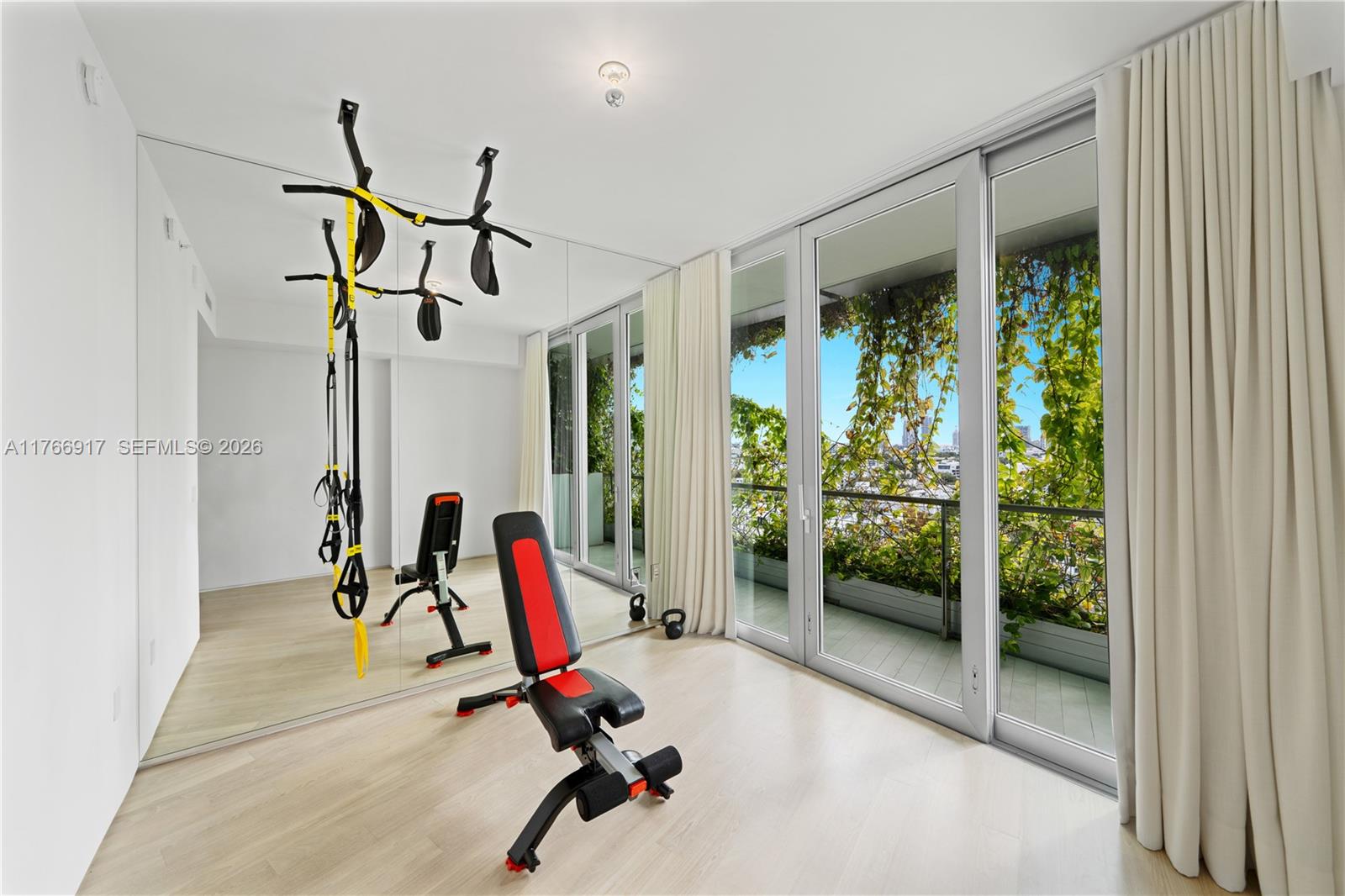 MID-CENTURY MINIMALIST INTERIORS BY AUSTIN HARRELSON WITH STUNNING SUNSET VIEWS OVER THE BAY & CITY SKYLINE FROM THIS SPRAWLING 5-BEDROOM RESIDENCE AT MONAD TERRACE BY AWARD-WINNING ARCHITECT JEAN NOUVEL! Flowthru 5 Bed + 5.5 Bath Residence in 3,936 SF wrapped in 1,474 SF Terraces. Private Foyer greets you to Oversized Great Room. Custom Wall-to-Wall Bookcases + 10 FT Ceilings in Elegant Venetian Plaster. Poliform Kitchen in White Calacatta Gold Marble w/Sculptural Cantilevered Marble Island & Wine Rack + Gaggenau Appliances. Custom Oak Breakfast Banquet. Primary Suite w/Bathroom in Calacatta Gold Marble & Floating Wood Vanity + Steam Shower & Ago Soaking Tub by Antonio Lupi. Laundry Room Doubles as Service Quarters. Diagonal Teakwood floors. Private Elevator with Direct Access to Garage.