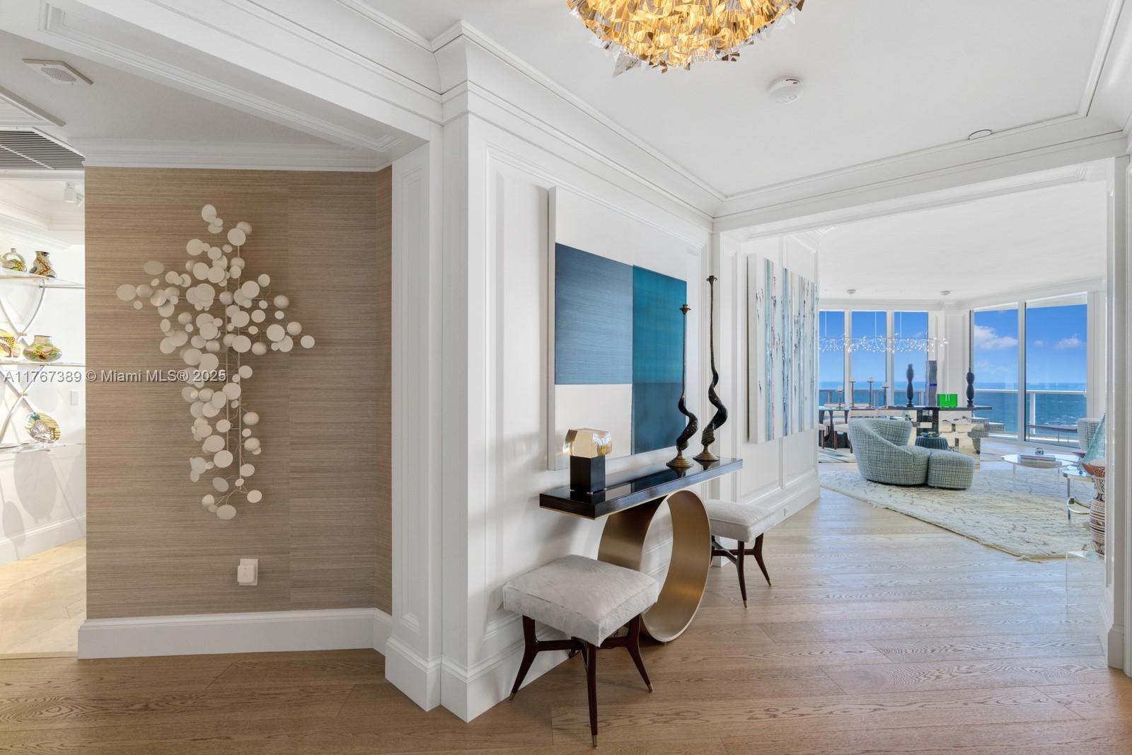 Luxuriate in this Bellini corner residence in Bal Harbour with stunning N.E. & W. Ocean views. This 3BR+office, 6.5BA, 3,820 SF gem features exquisite woodwork, custom storage, and a private elevator opening to bright living spaces with floor-to-ceiling windows and a 700+ SF terrace surrounded by endless ocean views. The gourmet kitchen boasts 10-ft ceilings, premium appliances, and custom cabinetry. The primary suite offers sunrise views, 3 walk-in closets, and 2 spa-like bathrooms. Enjoy exclusive amenities: heated pool, private beach pavilion, gym, spa, salon, Pilates, dining, and 2 parking spaces. Steps from the beach and world-class shopping/dining, this is your ultimate coastal retreat.
