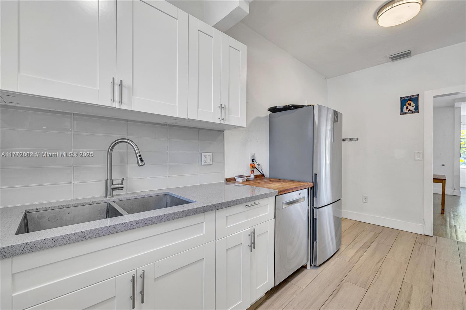 Freshly remodeled, bright, and airy second-floor apartment in the heart of South Beach. This private retreat is just five blocks from the beach, four blocks from Whole Foods, and within walking distance of Lincoln Road and South of Fifth. The dine-in kitchen features new appliances, including a gas stove, quartz countertops with a waterfall edge, and reclaimed wood accents. With no shared walls and three exterior exposures, natural light pours in through brand-new hurricane-impact windows. Other highlights include modern grey-finished wood floors, new AC HVAC system, a newly remodeled bathroom, and updated lighting fixtures.